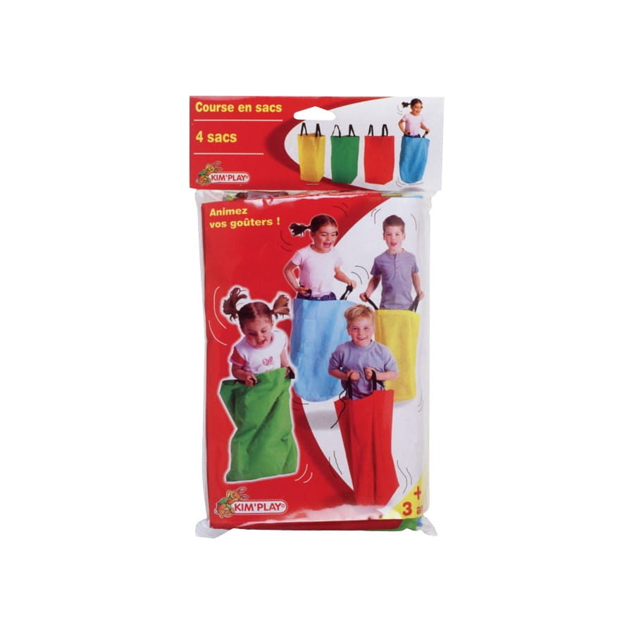 Voici un fabuleux jeu qui va animer les goûters et les réunions de famille. Il s'agit d'un kit de courses en sacs. Vous disposez de 4 sacs de couleurs différentes pour 4 enfants filles ou garçons. Qui sera le plus rapide dans un sac ? Préparez un petit lot pour le meilleur d'entre eux afin de les motiver au départ. Vous verrez qu'ensuite, ils voudront s'amuser avec tout seuls !
