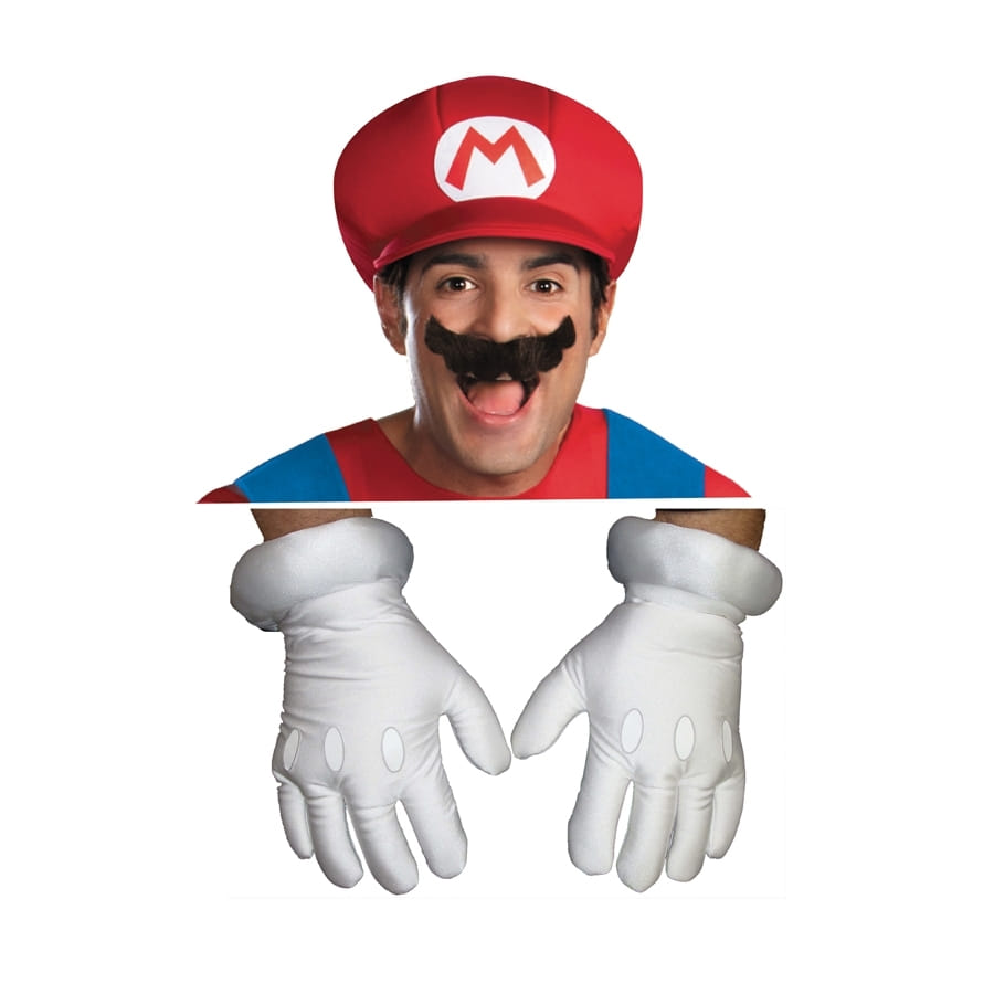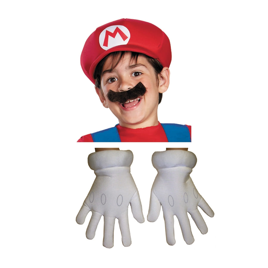 Voici un superbe kit d'accessoires, indispensable pour un déguisement de Mario, le plus célèbre super héros des jeux vidéo. Le kit sous licence officielle est composé de la casquette rouge munie de la lettre M de Mario, la barbe noire et les gants blancs. Notez que pour les gants, vous pourrez les prendre ou pas, selon votre souhait.