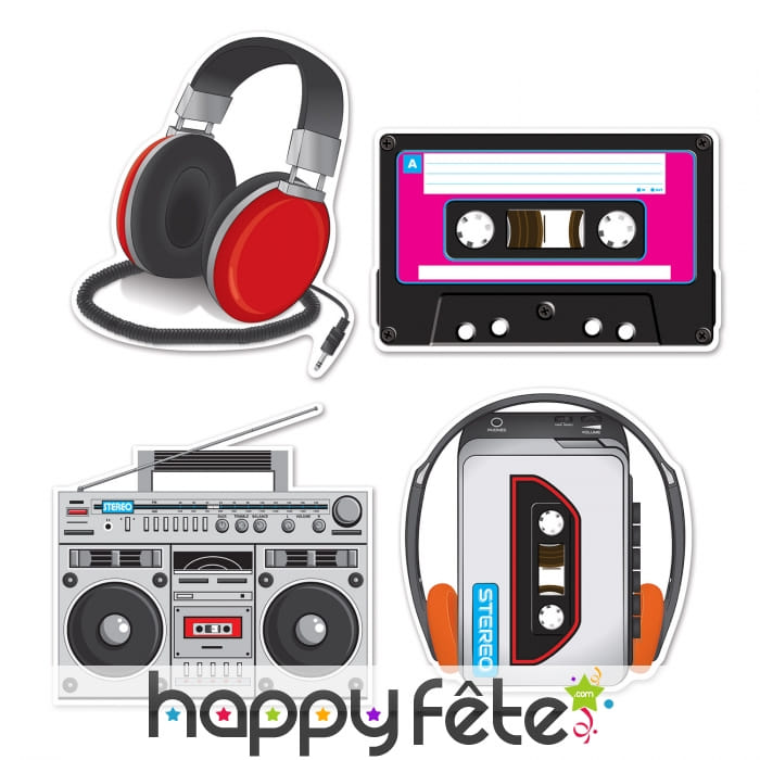 Profitez d'une soirée vintage pour donner à vos invités la nostalgie de l'univers rétro, grâce au kit de 4 decos années 80 en carton.