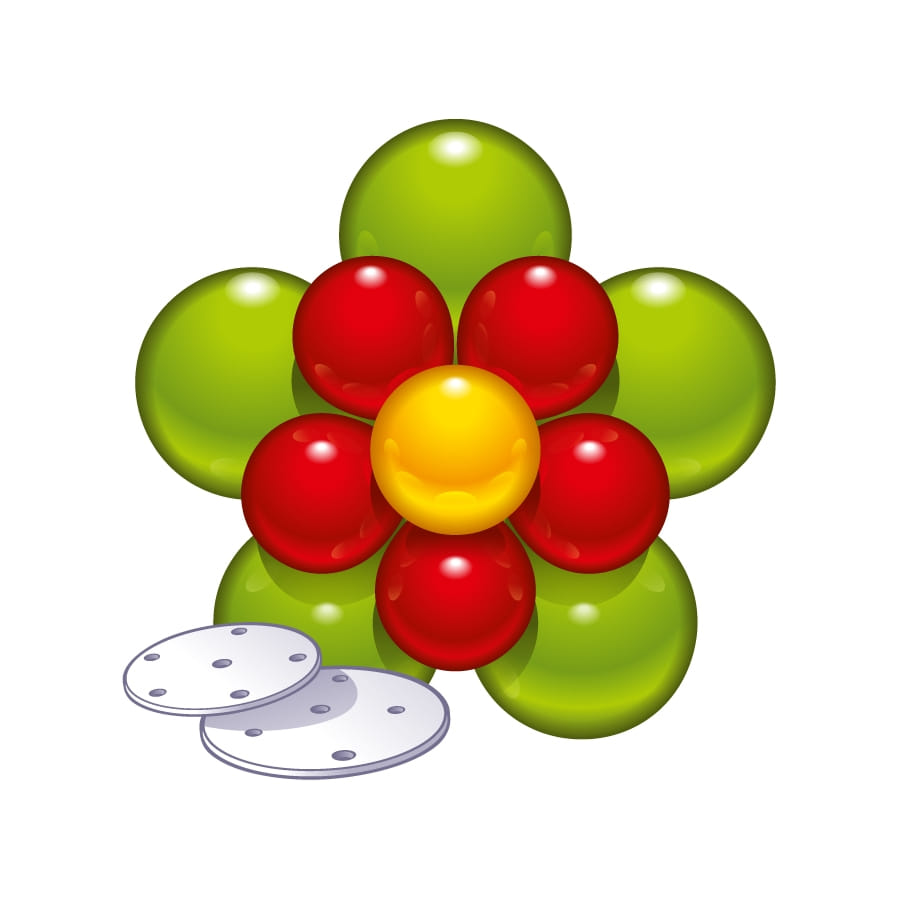 Élaborez une décoration festive en utilisant cette création originale aux couleurs ensoleillées. Le kit de ballons pour fleur à construire est formé par 18 ballons de tailles et de couleurs différentes. Vous disposerez de 6 ballons verts, de 6 ballons rouges et de 2 petits ballons jaunes pour constituer votre fleur décorative en ballons. L'article contient également 2 plaquettes cartonnées à utiliser comme support.
