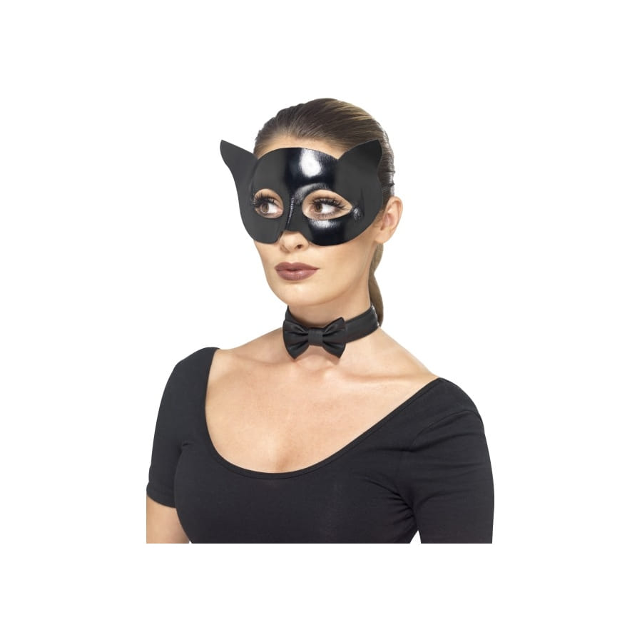 Si vous recherchez un accessoire de déguisement sur le thème animal pour Halloween ou toute autre fête déguisée, nous vous proposons ce kit de chat noir masqué pour femme. L'ensemble comprend un demi-masque chat noir à effet mouillé couvrant la partie supérieure du visage et un noeud papillon noir. Cet accessoire vous donnera un look à la fois sexy et élégant.