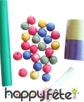 Avec ses chapeaux bleus à étoiles colorées, ses sarbacanes de couleurs différentes munies d'une petite ligne blanche (sur leur contour), ses 100 boules (recharges pour les sarbacanes, ce qui fait 10 boules par personne), ses 10 sans-gênes et ses 20 serpentins multicolores (2 serpentins par personne), vous aurez en votre possession tout ce qu'il faut pour une ambiance festive réussie (attention aux yeux avec les sarbacanes).
