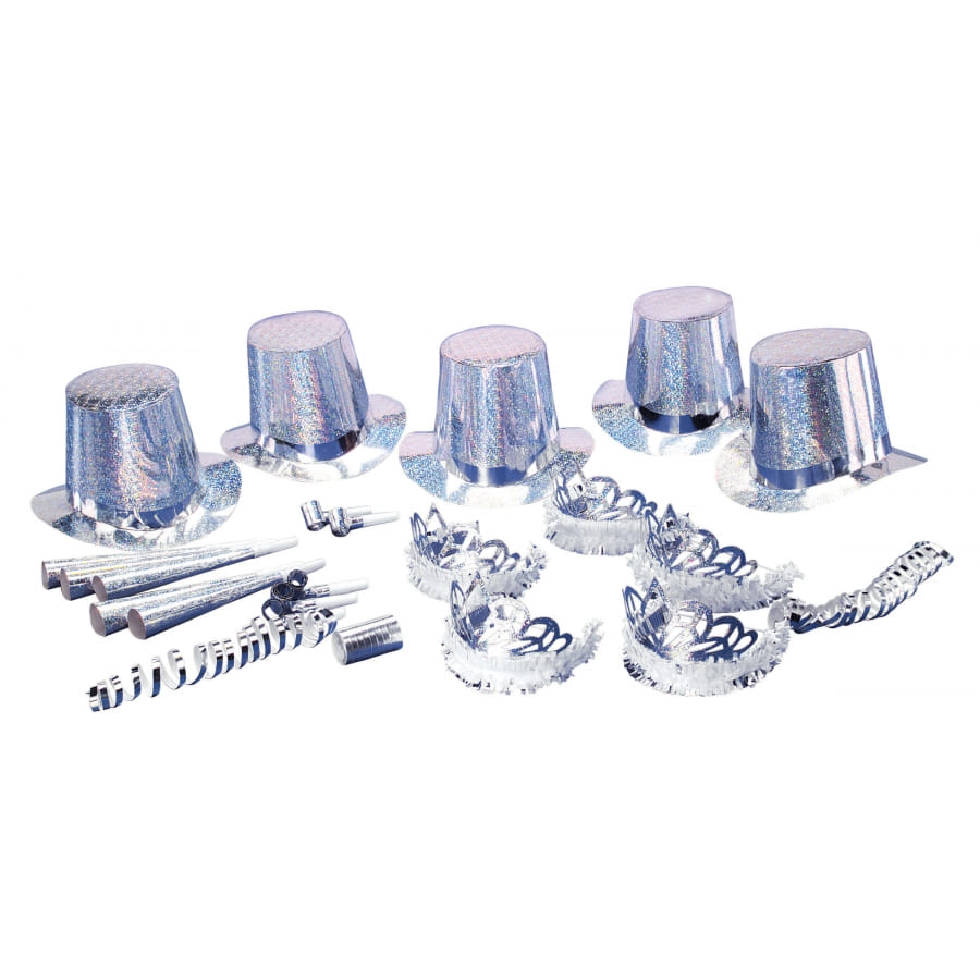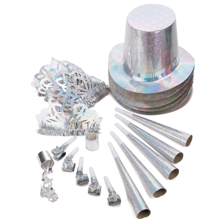 Un kit de cotillons hologrammes diamantés composé de trompettes, de chapeaux, de sans-gêne, de rouleaux de serpentins et de coiffes. Ce kit est parfait pour le Nouvel An chinois, un carnaval, un anniversaire et le Nouvel An.