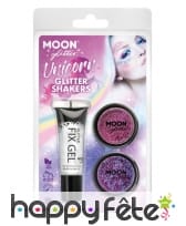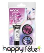 - Licorne fines paillettes avec une bonne adhérence assurée par le gel fixant.