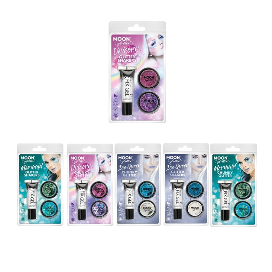 Sirène, licorne ou reine des glaces, vous pouvez incarner l'héroïne de votre choix grâce à ce Kit de fines paillettes cosmétiques à thème en pot.