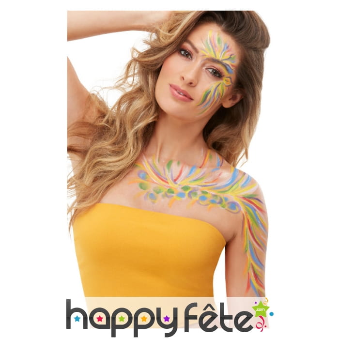 Il vous permettra, à l'aide du maquillage à l'eau multicolores et d'applicateurs, de dessiner de magnifiques figures sur votre corps.