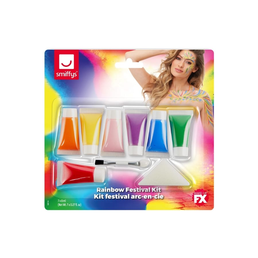 Transformez vous pour la prochaine journée déguisée grâce au kit de maquillage arc-en-ciel pour femme.
