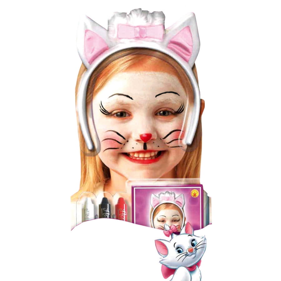 Un grand classique apprécié par tous les âges, les Aristochats demeure un dessin animé incontournable. Grâce à ce kit de maquillage Aristochat sous licence Disney, votre ravissante demoiselle pourra se glisser dans le personnage de Marie. Vous arriverez à ce résultat grâce à un lot de 3 crayons : blanc, noir et rouge, accompagné d'un serre-tête blanc et rose équipé d'oreilles de chat. Le livret d'instruction vous aidera dans la démarche à suivre pour transformer votre fillette en un mignon petit chaton.