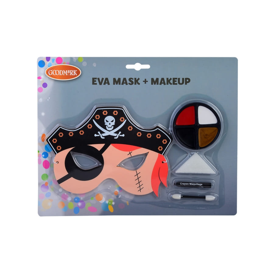 Ce Kit de maquillage de pirate avec masque, enfant sera parfait pour compléter un costume de pirate à l'occasion d'un goûter d'anniversaire par exemple.