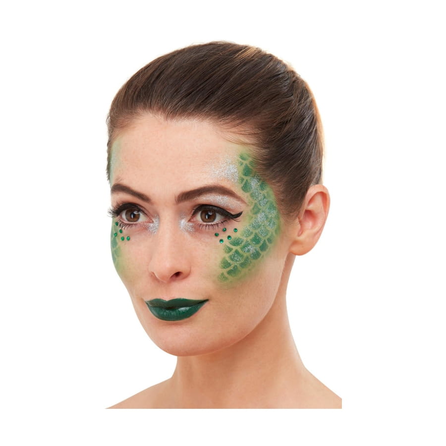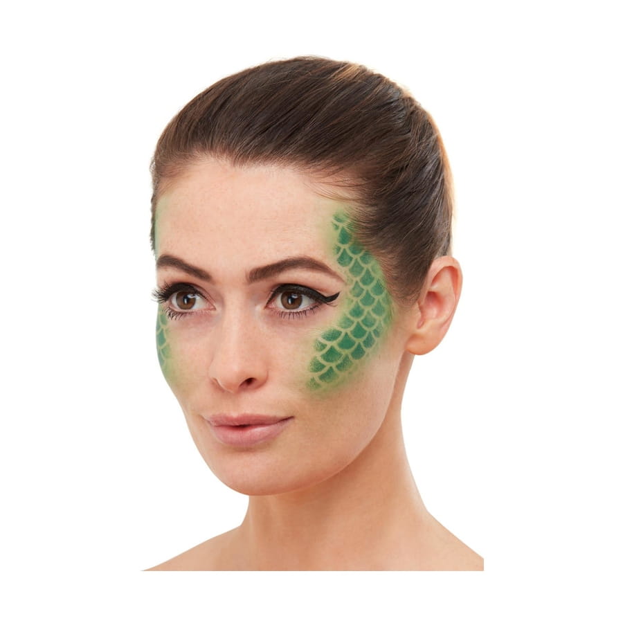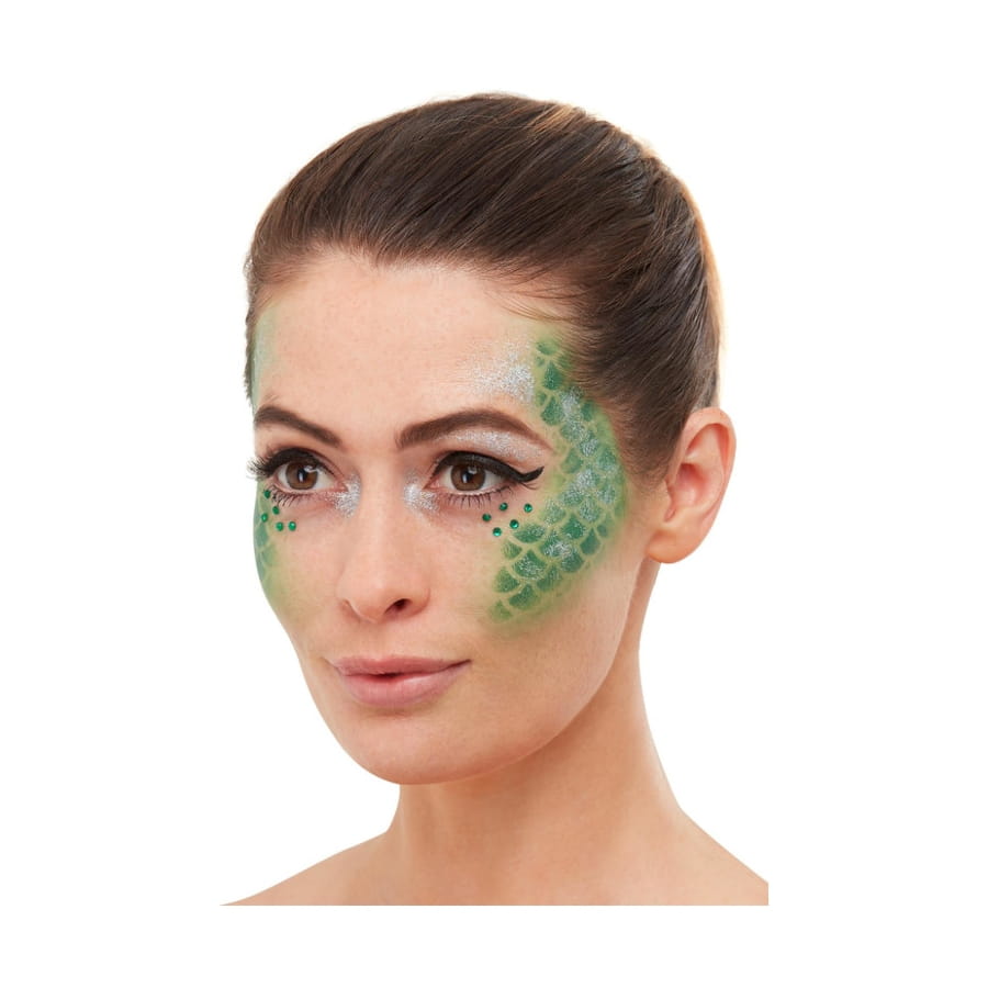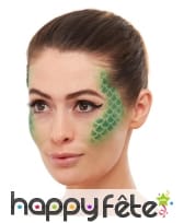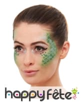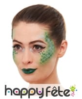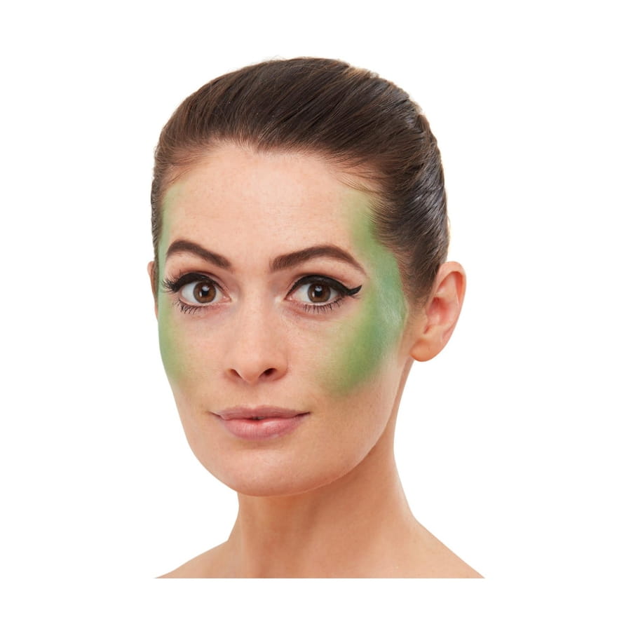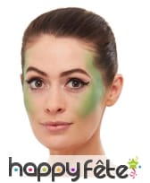 La peinture verte pour visage sera étalée délicatement sur la peau grâce au pochoir fourni dans le kit.