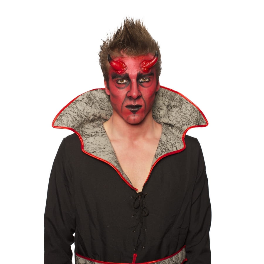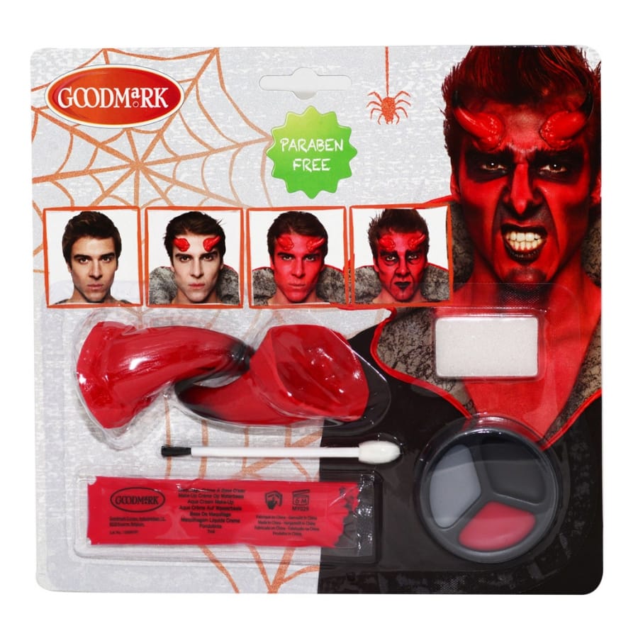 L'art du maquillage peut faire des merveilles à condition de disposer du bon matériel sous vos mains. Ce kit complet de maquillage diable comprend tout ce qu'il faut pour teinter votre visage d'ombrages comme celui d'un démon. Les cornes quant à elles fixeront sur votre front à l'aide de colle spécifique non fourni.