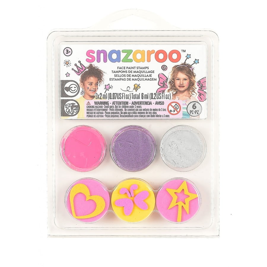 Le kit de maquillage fées papillons de la marque Snazaroo contient 3 fards de couleurs(rose, violet et argent) et 3 tampons.