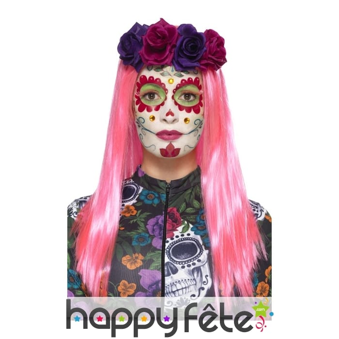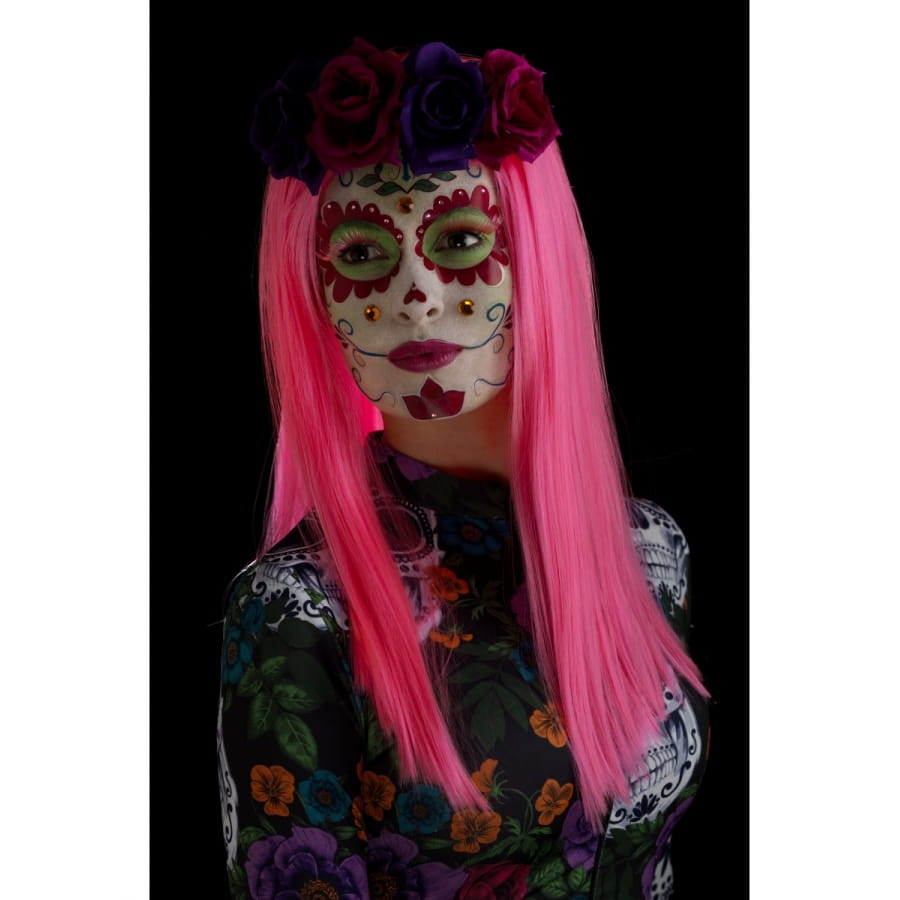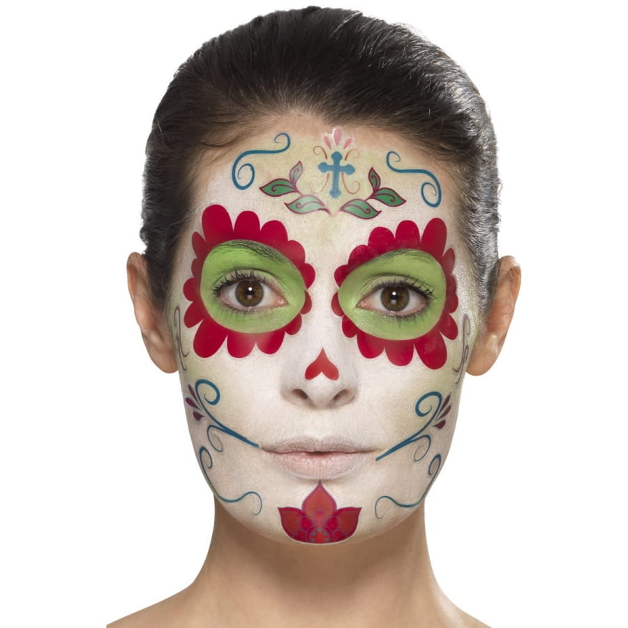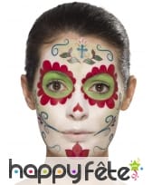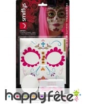 Savez-vous ce que produit la culture mexicaine mélangée à un style ultra girly ? Munissez-vous du kit de maquillage jour des morts girly pour obtenir un résultat des plus époustouflants. Cet article cosmétique est composé de plusieurs éléments multicolores et phosphorescents. Vous disposerez de transferts à motifs inspirés de la culture mexicaine, de peinture pour visage, de bijoux de maquillage, d'un crayon, de faux cils et aussi d'un applicateur.