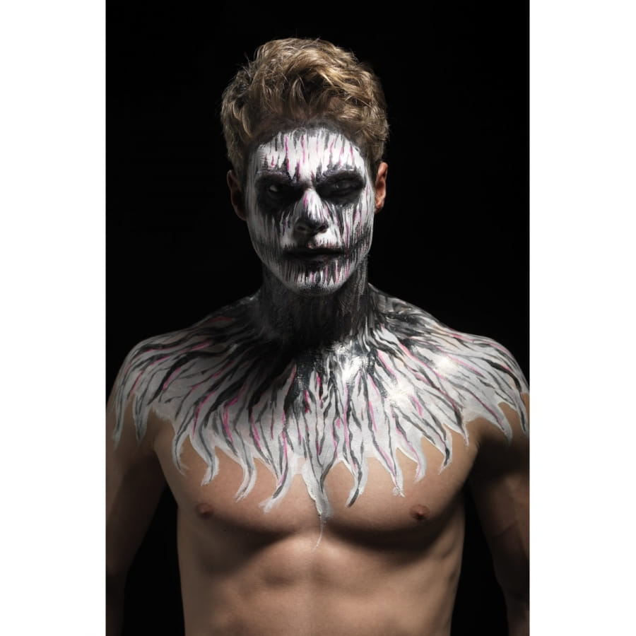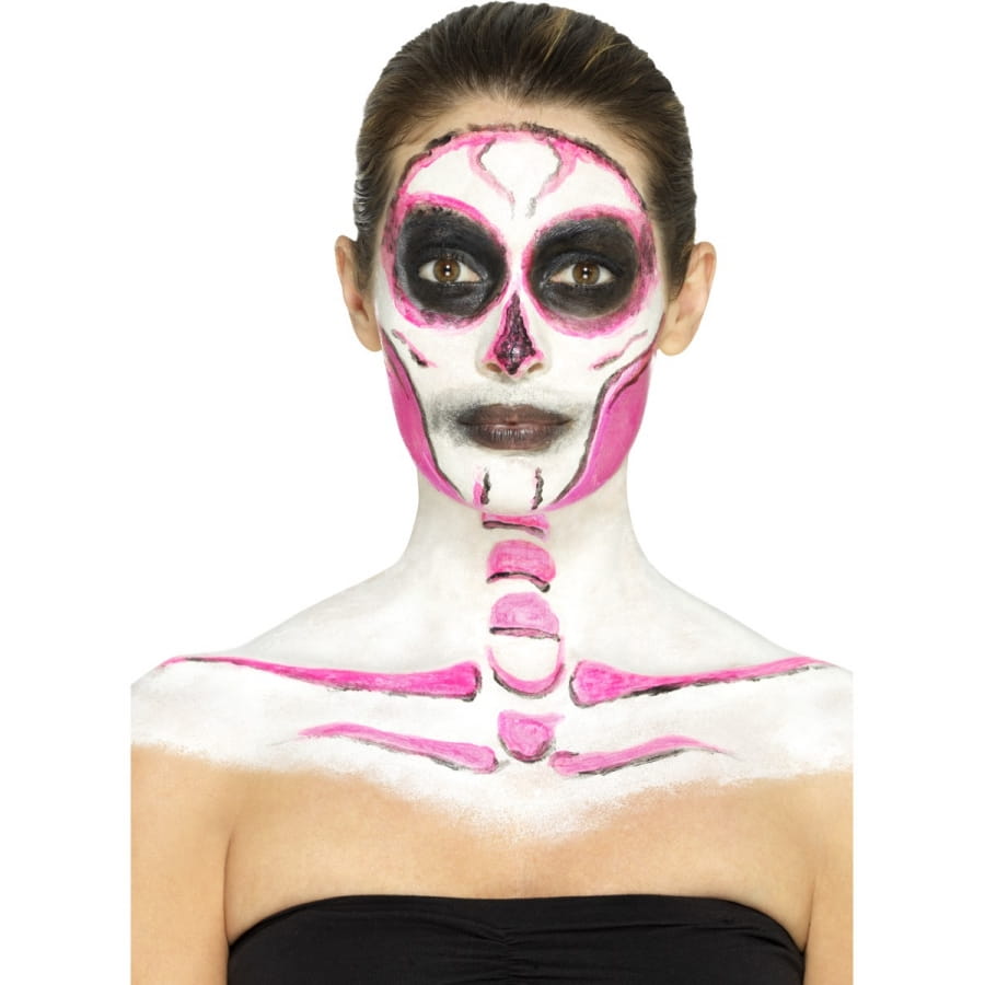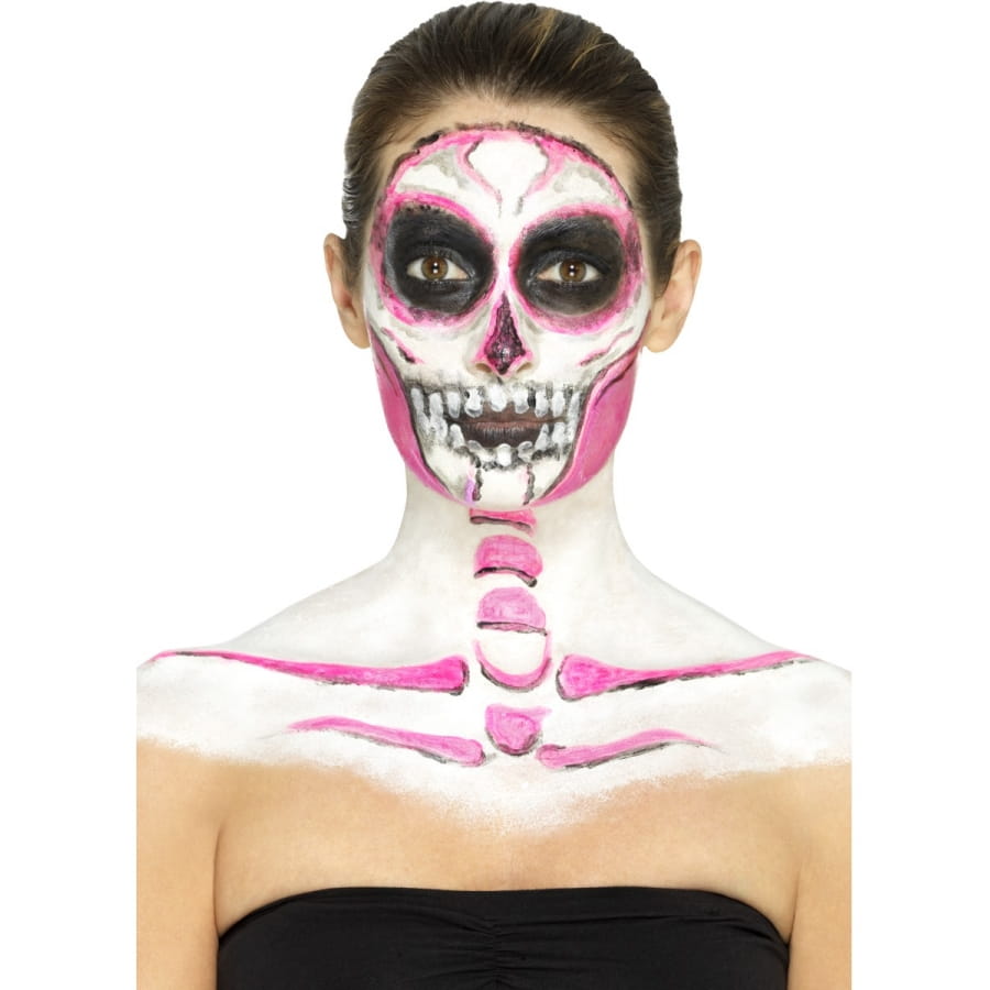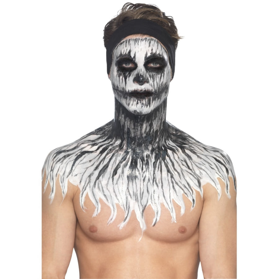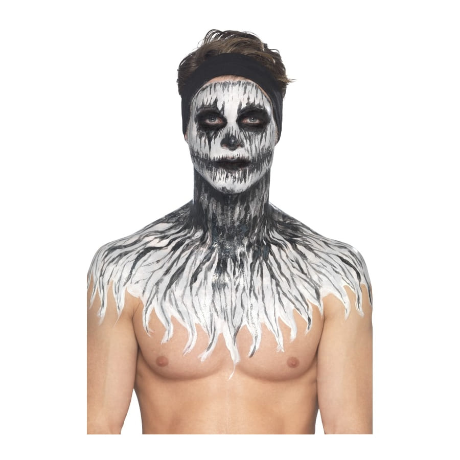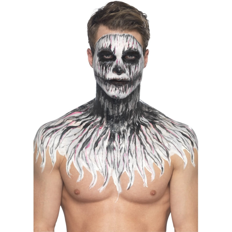 Faire en sorte qu'un squelette reprenne vie sera une véritable partie de plaisir pour Halloween. Vous avez l'occasion de faire briller un squelette dans le noir grâce à cet article cosmétique. Équipez-vous tout simplement du kit de maquillage squelette néon, réagit aux UV. Vous utiliserez un produit à base de latex liquide et qui réagit aux ultraviolets. Vous disposerez de 4 pots de 29,57 ml chacun, contenant du maquillage phosphorescent de différentes couleurs. Pour l'application, 4 éponges vous seront fournies.