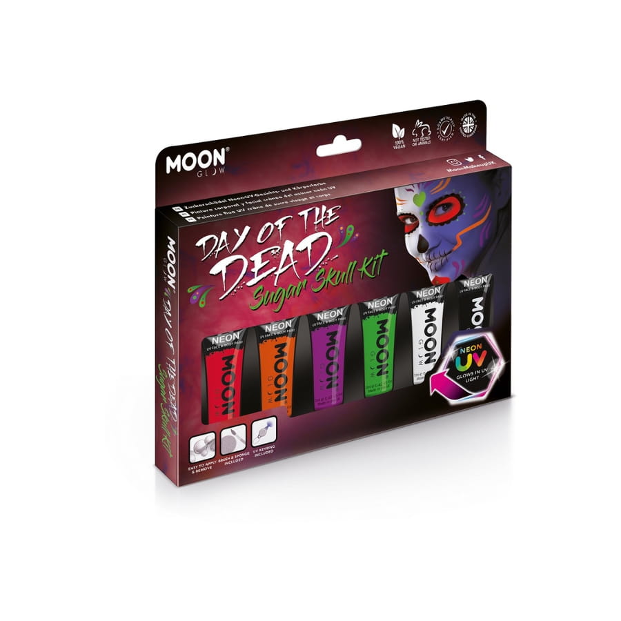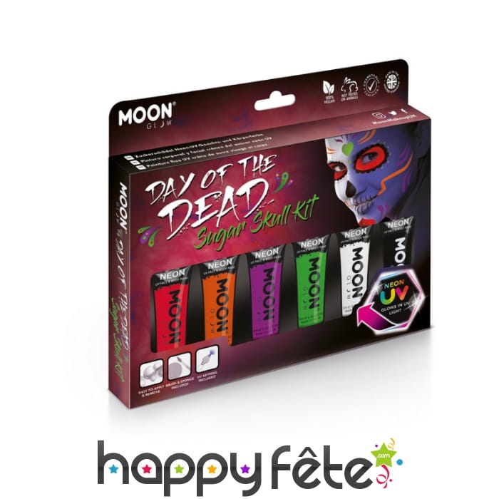 Pour parfaire votre maquillage de dia de los muertos, nous vous proposons ce Kit de maquillage UV visage jour des morts.