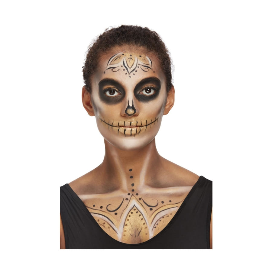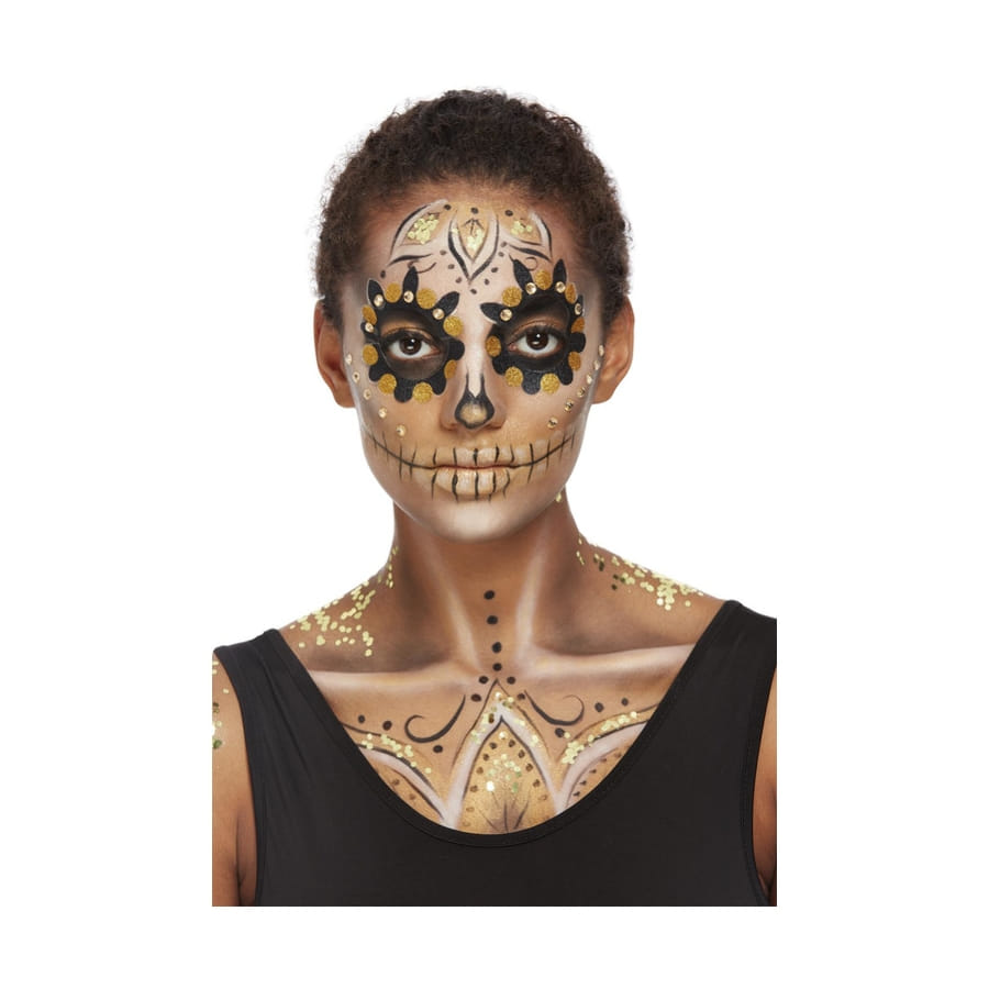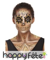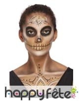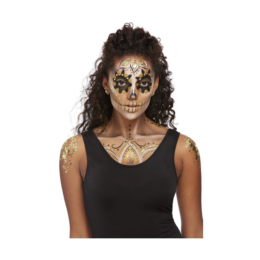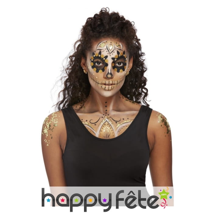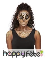 Dia de los muertos approche à grand pas et votre déguisement sera le plus beau grâce à ce Kit de maquillage visage Day of the dead doré.