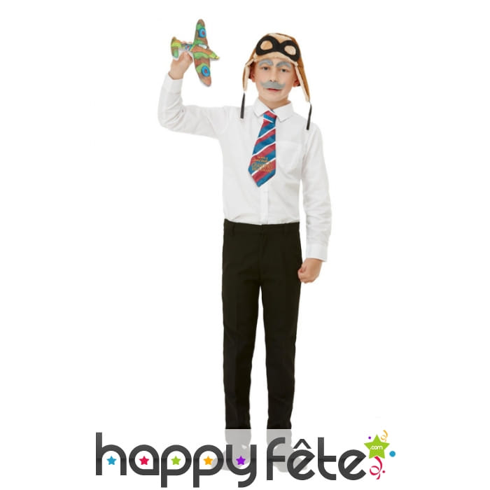 Avec son chapeau d'aviateur imprimé de lunettes noires et l'avion Supermarine Spitfire multicolores en taille miniature, vous incarnerez à merveille ce personnage de bande dessiné.