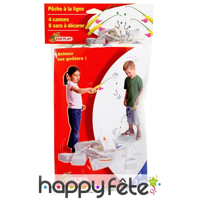 Apprenez aux enfants l'art de la pêche d'une manière insolite ! Ce kit de pêche à la ligne vous propose 4 cannes à pêche ainsi que 8 sacs à décorer. Le jeu consiste à attraper les sacs avec sa canne à pêche. Celui qui aura pêché le plus de sacs remportera le défi ! Ce jeu d'animation multicolore se joue à plusieurs, et il est parfaitement adapté aux petits garnements qui n'arrivent pas à tenir en place ! Pour information, nous vendons de nombreux lots de cadeaux dans la catégorie kermesse. N'hésitez donc pas à y jeter un oeil, certains seront parfait pour compléter le contenu des petits sacs cadeaux.