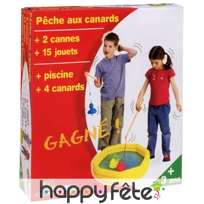 Pour organiser une kermesse réussie, ou bien pour animer une fête d'anniversaire, vous aurez certainement besoin d'articles comme celui-ci pour amuser tous les enfants. C'est un kit complet de pêche aux canards, contenant 2 cannes pour pêcher, une petite piscine à remplir d'eau, 4 petits canards flotteurs à pêcher, et 15 jouets mixtes à offrir aux participants. Produit adapté aux enfants de plus de 3 ans.
