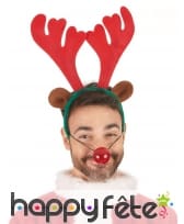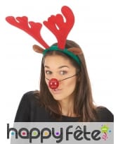 Le kit de renne de Noël constitue un accessoire parfait pour bien accueillir la fête de Noël. Il reste disponible sur notre site. Conçu aussi bien pour les hommes que pour les femmes, il rajoutera de l'originalité à votre tenue. Il s'agit d'un serre-tête vert pourvu de bois de renne de couleur rouge et d'une paire d'oreilles marron. A celui-ci s'ajoute un nez rond clignotant qui rendra le tout encore plus réussi !