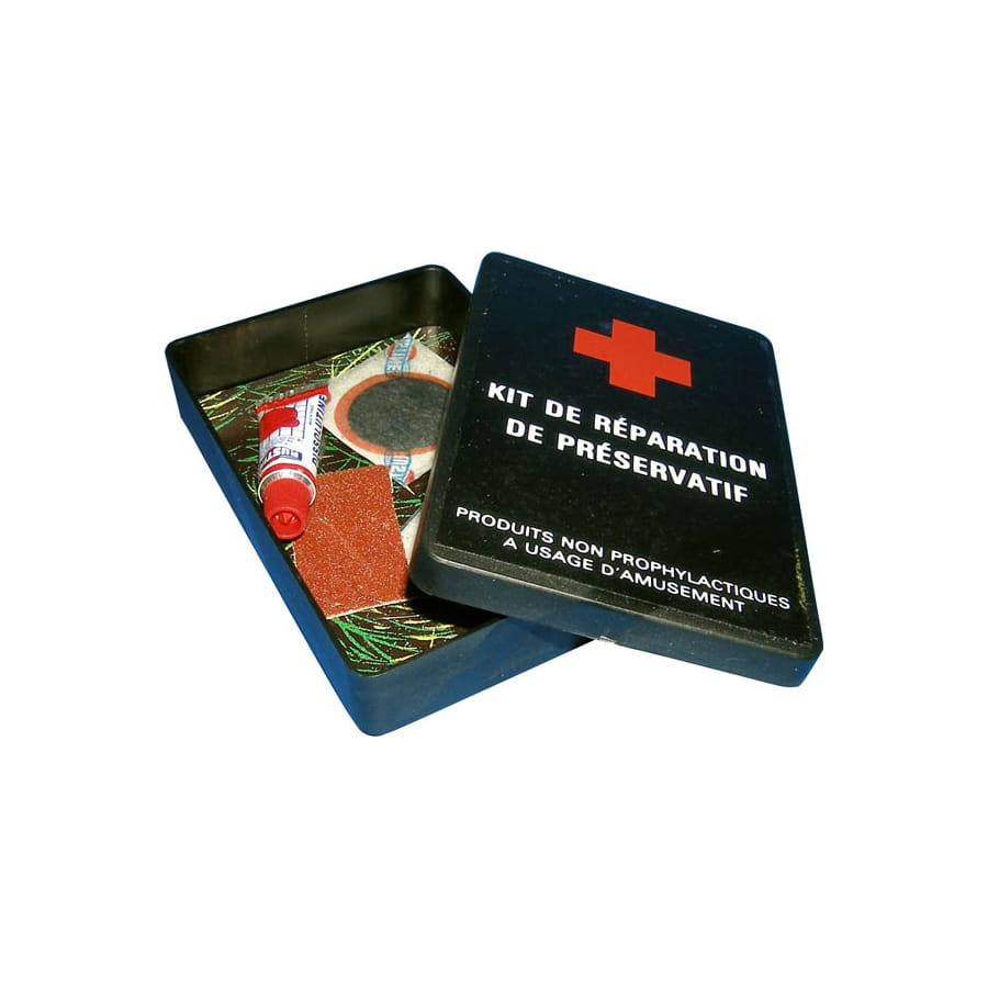 Un kit de réparation de préservatif. Avec ce kit, fini les pépins imprévus, vous aurez tout le nécessaire pour les situations d'urgence!