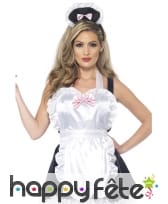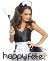 Cela fait un bon moment que le déguisement de soubrette a fait ses preuves! Si vous voulez en essayer un lors de la prochaine fête déguisée, vous n'aurez pas besoin de vous procurer la tenue complète. Nous avons un kit, qui, assorti avec une petite robe noire, pourrait faire l'affaire. Ce kit de soubrette est composé d'une coiffe de soubrette ornée d'un noeud, avec un joli petit tablier et un plumeau, le tout de couleur noire et blanche.