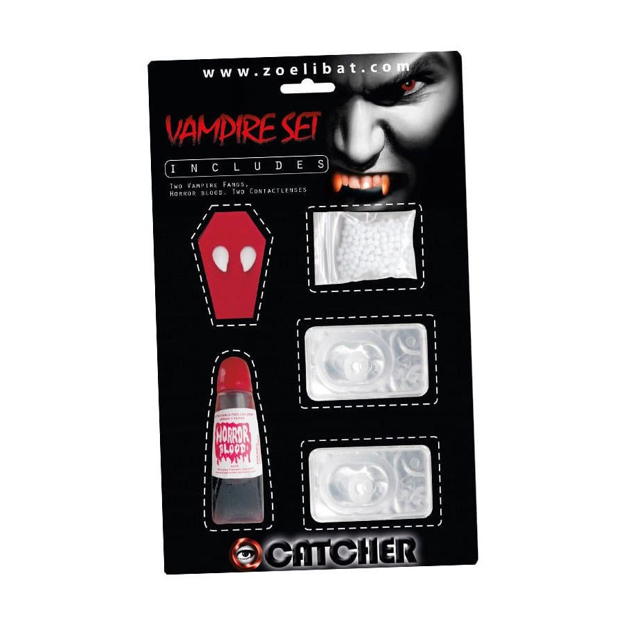 Ce Kit dents, sang et lentilles de vampire pour adulte sera la finition idéale pour votre déguisement de Comte Dracula.