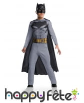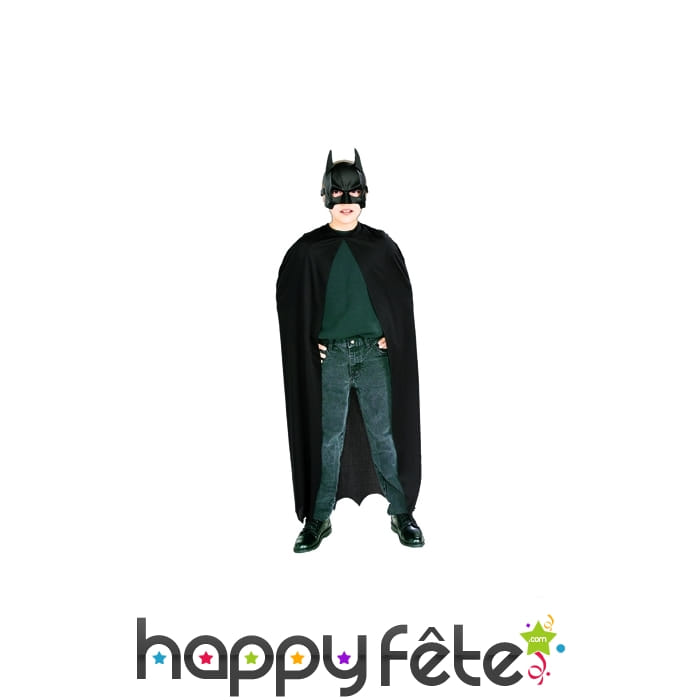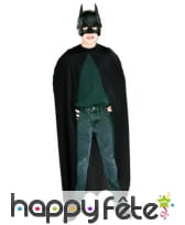 Batman, le super héros masqué va partir pour le carnaval. Les petits garçons seront émerveillés par ce kit enfant pour déguisement de Batman. Il s'agit d'un modèle sous licence Batman. L'article est formé par une longue cape noire à bords irréguliers. Elle a été conçue dans un tissu léger et fait 110 cm de longueur. Il est complété par un demi-masque noir, en plastique, avec une forme imitant la cagoule de Batman. A noter que le déguisement ne convient pas aux enfants de moins de 4 ans. Il est très pratique et se porte avec n'importe quelle tenue. Il suffira à votre petit garçon d'enfiler sa cape et son masque pour se transformer en super héros de Gotham City.