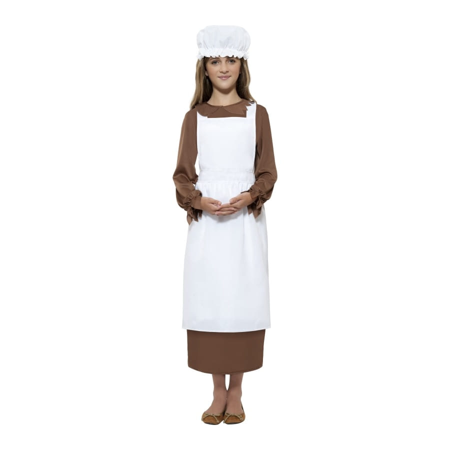 Kit de fille victorienne, pour enfants, composé d'un tablier et d'un chapeau, tous deux blancs. Le chapeau est orné de petits volants. Ce déguisement sera parfait si votre fille doit incarner un personnage de l'époque victorienne ou si elle aime tout simplement ce style.