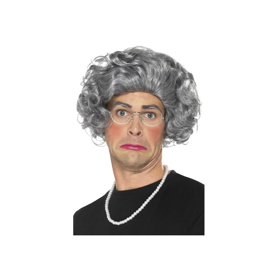 Que vous soyez homme ou femme, profitez d'un déguisement humoristique pour devenir vieux avec ce kit grand mère et père perruques, accessoires. Très réaliste, l'ensemble vous permettra de disposer d'une perruque grise, une paire de lunettes et un collier de perles blanches. Faites un tour du côté de nos produits cosmétiques pour vous faire quelques rides.