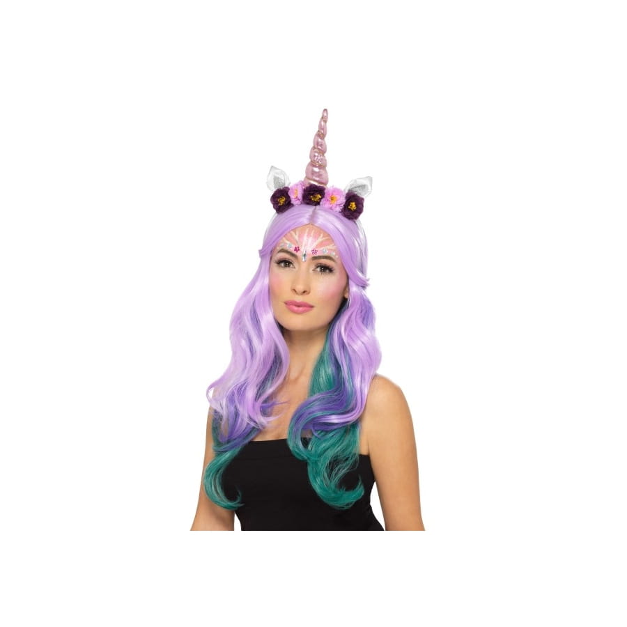 Une petite perruque de couleur girly avec une corne unique sur la tête sont préconisées pour vraiment parfaire votre maquillage.