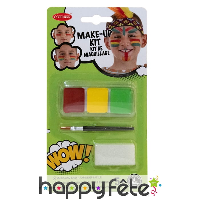 Peaufinez la tenue d'amérindien de votre petit garnement grâce au kit de maquillage indien pour enfant.