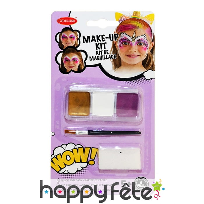 Le kit de maquillage licorne pour enfant est idéal pour un maquillage rapide et efficace à l'occasion d'une fête à thème.
