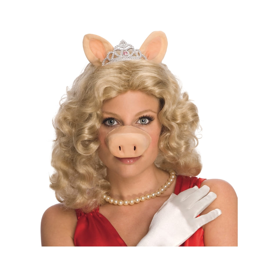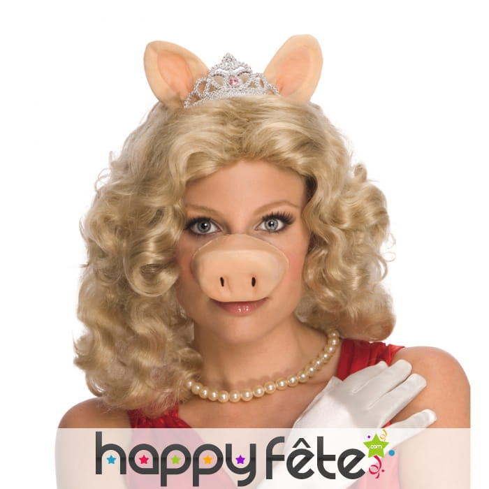 Incarnez la diva des Muppets avec ce kit miss piggy très complet et très chic ! Le set comprend une magnifique perruque blonde ondulée, légèrement bouclée, une tiare argentée agrémentée de fausses pierres précieuses, un gros nez de cochon de couleur beige et une paire d'oreilles assortie. Ce kit d'accessoires est sous licence Muppets Show, dédié aux femmes.