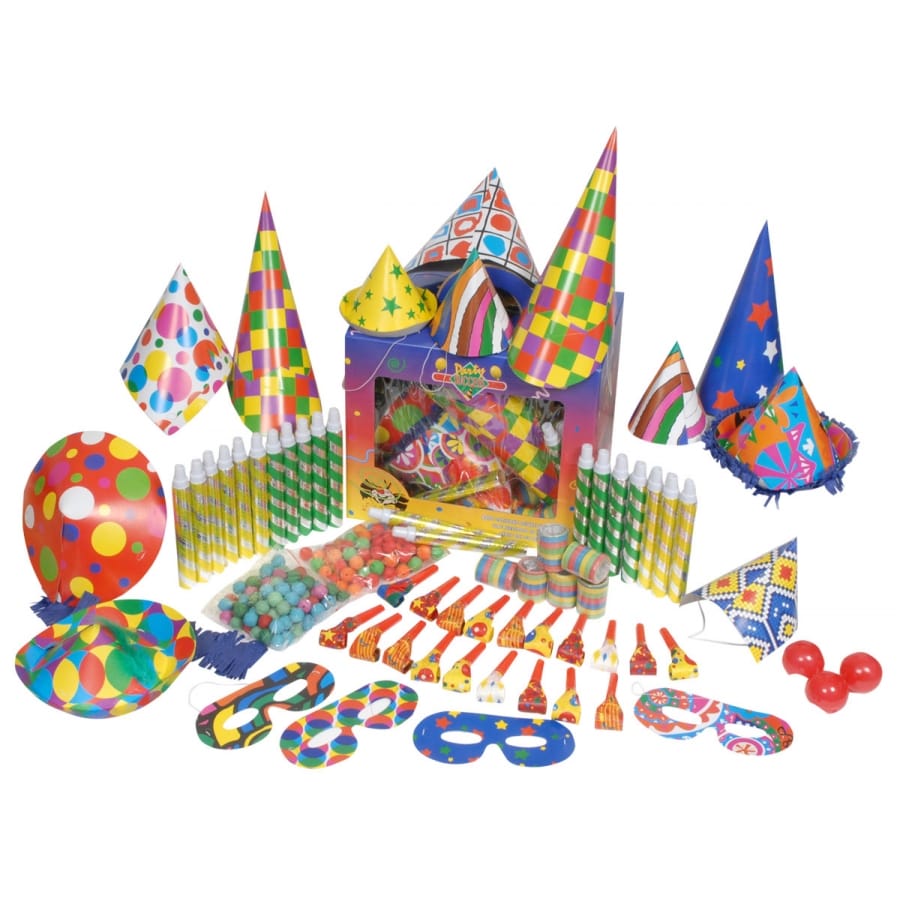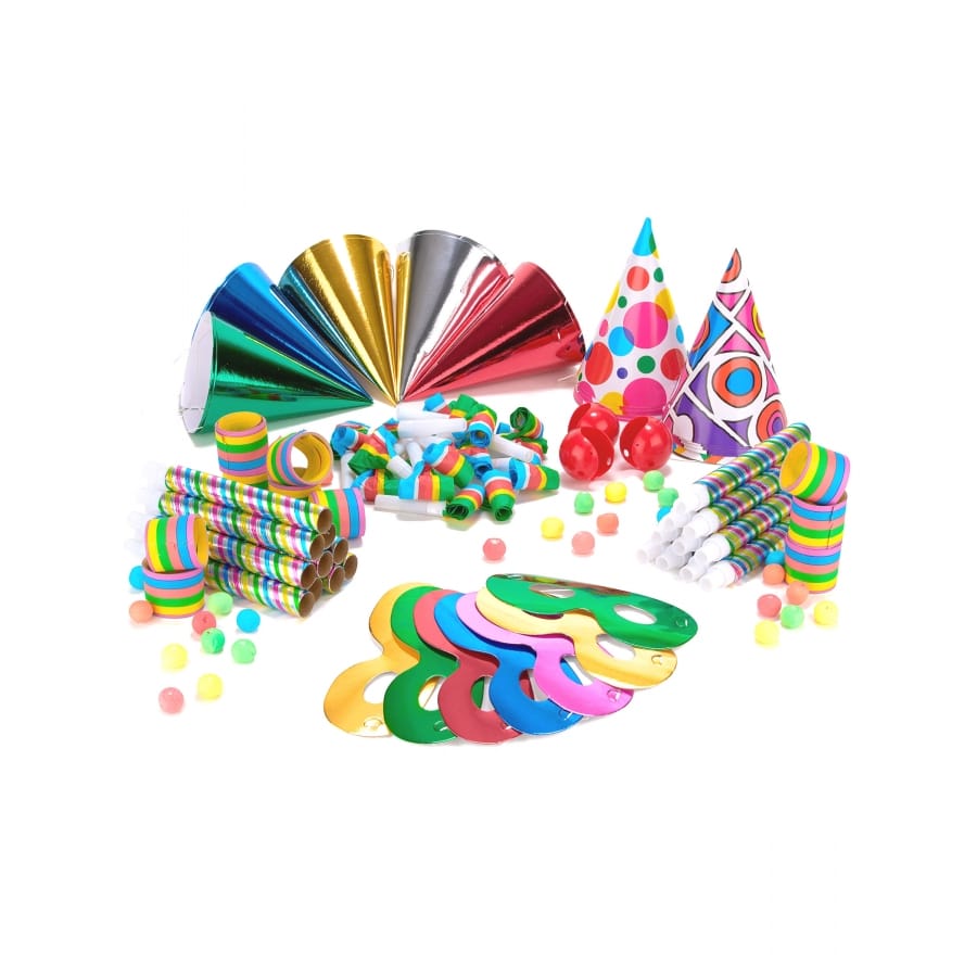 Vos invités seront impressionnés de votre sens de l'organisation. Ce kit multicolore de cotillons pour 20 personnes englobe divertissement, amusement et accessoires de fête pour un anniversaire mémorable. Il est ainsi composé d'un lot de 10 chapeaux de papier à multiples motifs et couleurs et de 10 autres chapeaux en feuille de métal à couleur unie mesurant chacun 16 cm. Retrouvez également 20 sarbacanes accompagnées de boules multicolores. 20 petits rouleaux de serpentins sont aussi fournis pour une ambiance colorée. En matière d'accessoires de déguisement, vous disposerez de 7 masques loups de différentes couleurs et de 3 nez rouges de clown.