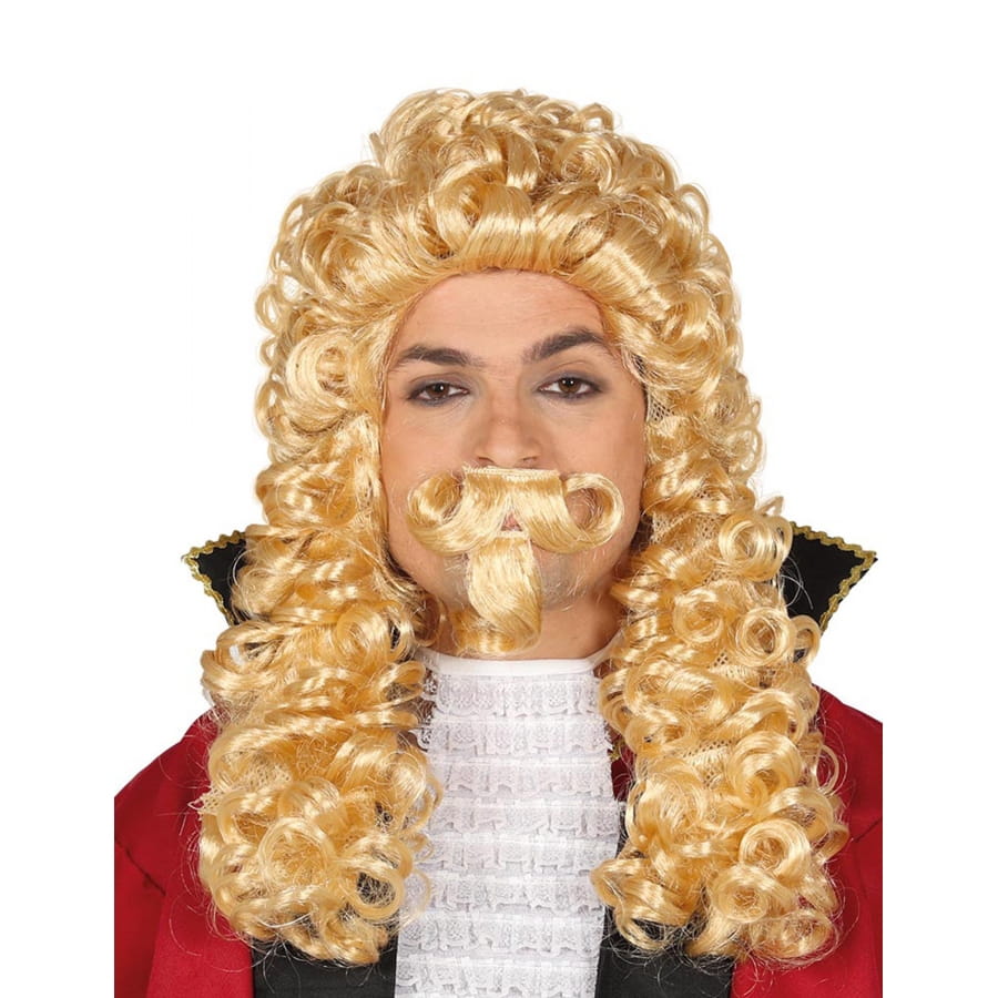 Le kit perruque et moustache de Marquis blond adulte se compose d'accessoires pour un costume de mousquetaire.