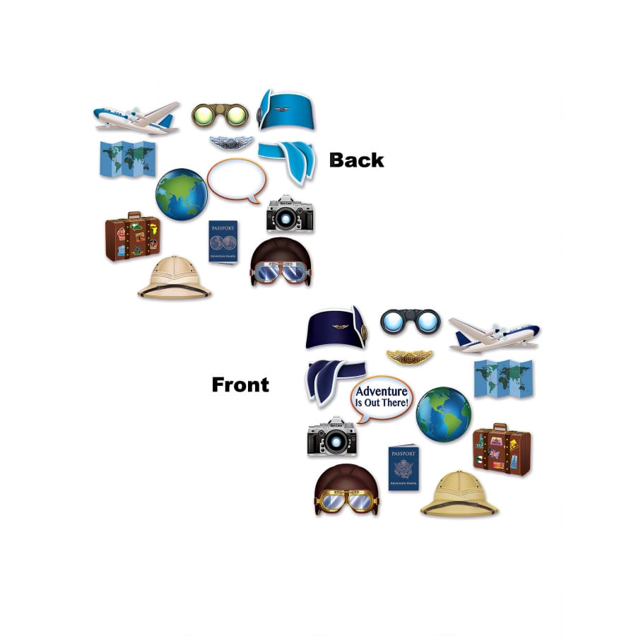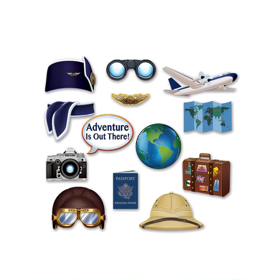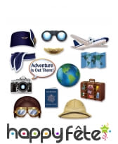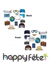 Alors, qu'y a-t-il dans ce sac magique? Ce n'est rien de moins que 13 accessoires tous plus amusants et évocateurs les uns que les autres. Vous y trouverez un passeport prêt à être tamponné, un avion qui vous emmènera vers de lointaines destinations, une valise qui contient, qui sait, tous vos souvenirs de voyages et tant d'autres surprises ! Ces accessoires ont une taille idéale, mesurant environ 14 x 29 cm, pour donner du peps à vos photos.