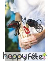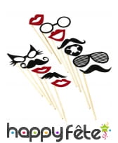 Les 12 sticks sont en carton et il suffira de les maintenir devant le visage pendant une prise photo, en vous servant de tiges en bois de 17 cm de haut fournies pour chacune des pièces.