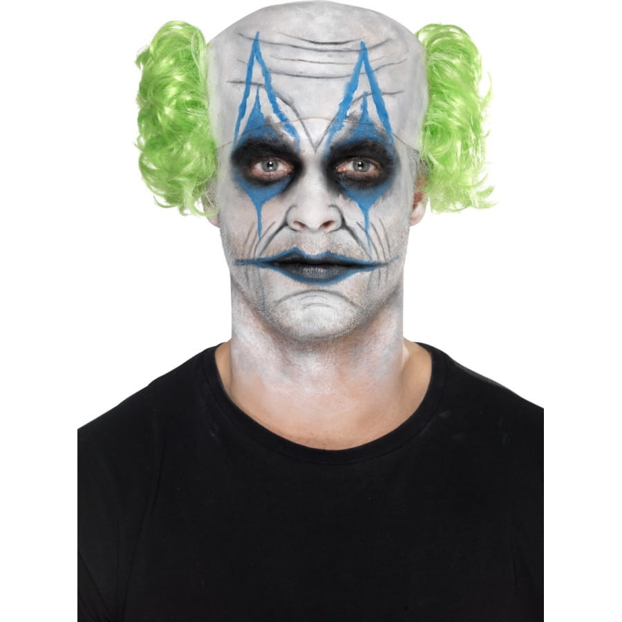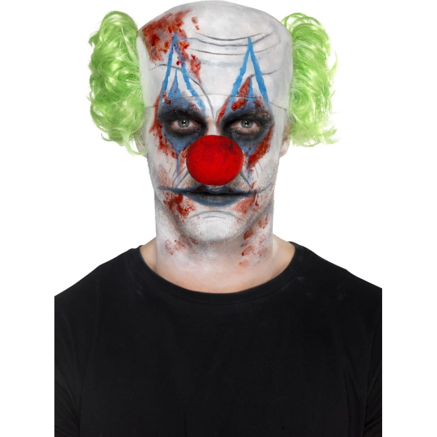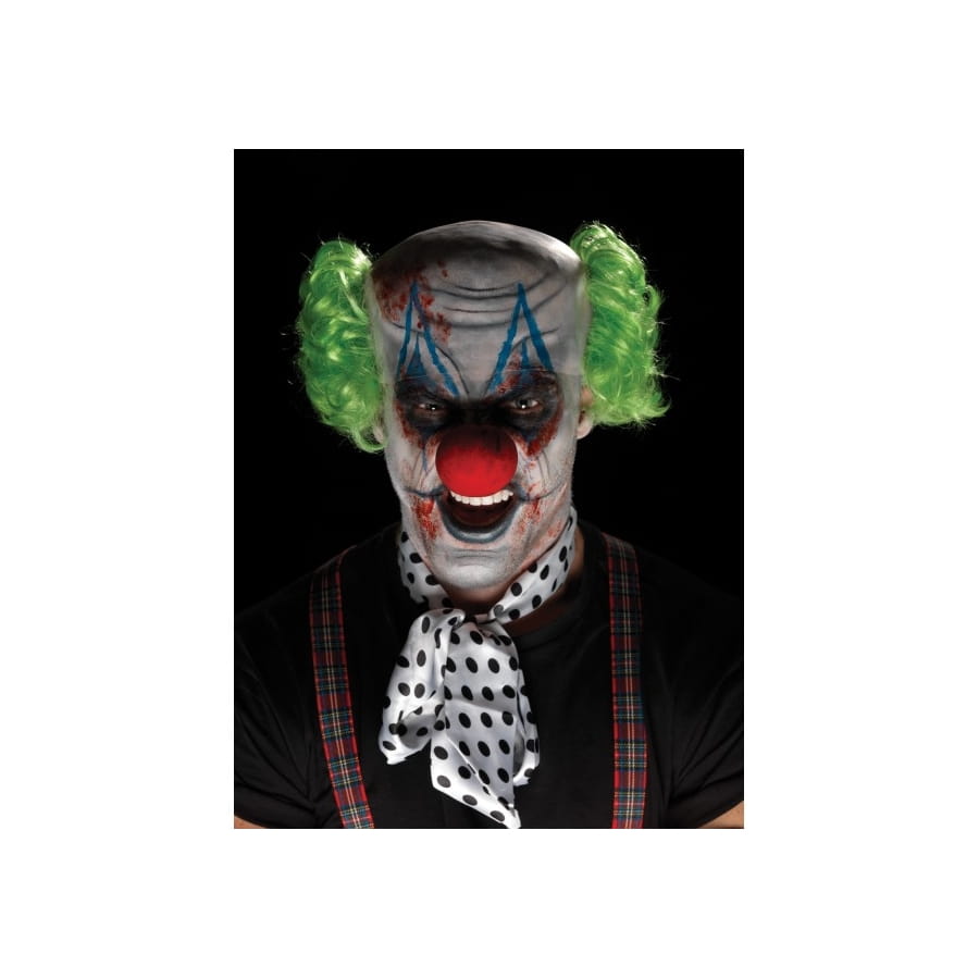 Habituellement, les clowns font rire mais à Halloween, ils se transforment en redoutables tueurs ! Métamorphosez-vous en un menaçant clown grâce au kit pour maquillage de clown sinistre. Il comprend un crâne chauve et deux touffes de cheveux verts qui vous rendront méconnaissable. Vous aurez affaire à de la peinture pour visage et à du faux sang pour créer des effets spéciaux. Vous disposerez d'un applicateur pour cela. Le fameux nez rouge de clown fera office de touche finale à votre maquillage.