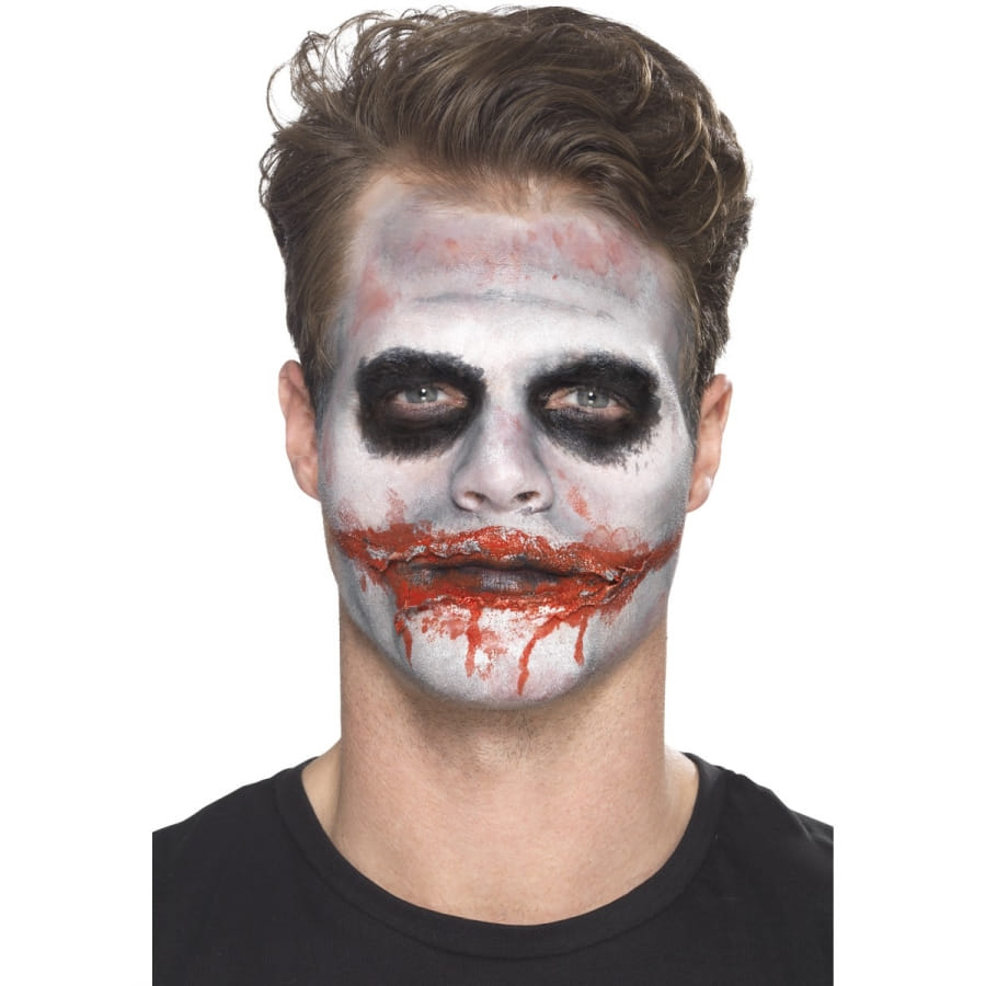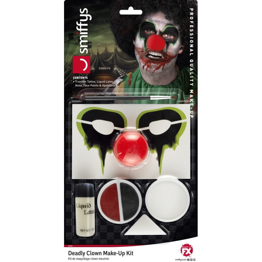 La rigolade est terminée, il est temps pour le clown de dévoiler son côté obscur. Le kit pour maquillage de clown tueur contient la panoplie complète du terrifiant clown d'Halloween. Les éléments fournis sont de couleur rouge et blanche. Vous y retrouverez du tatouage à transférer, du latex liquide, de la peinture pour visage, un applicateur, sans oublier le fidèle nez rouge du clown. Vos amis vont se retrouver nez à nez avec le clown de leurs pires cauchemars !
