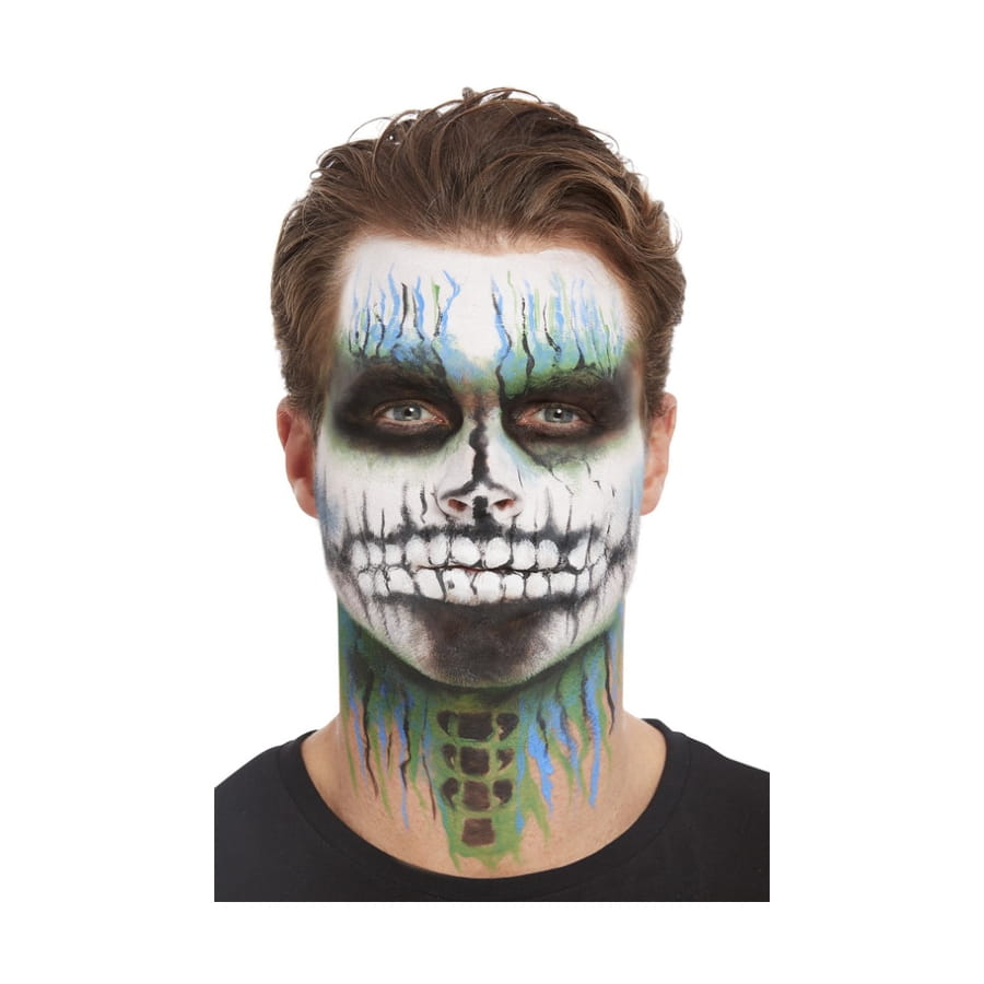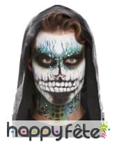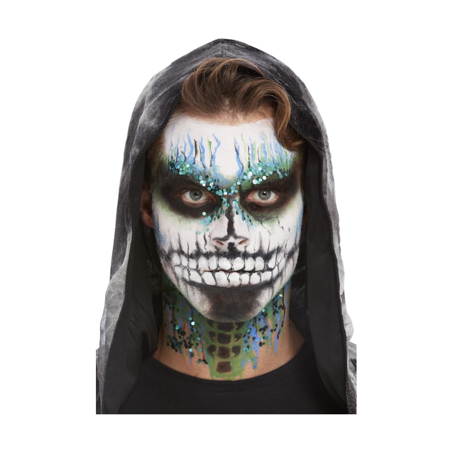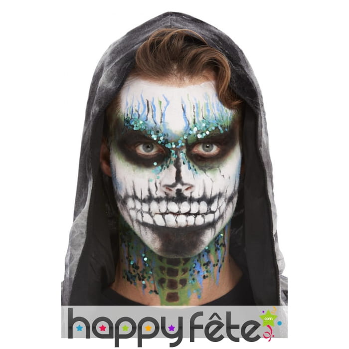 Ce Kit pour maquillage visage de squelette pailleté sera parfait pour terminer votre costume de squelettor.