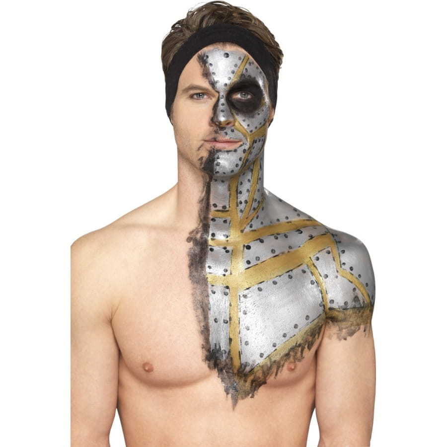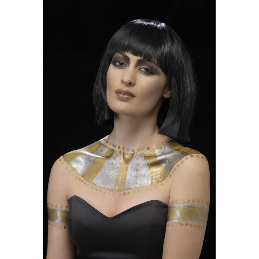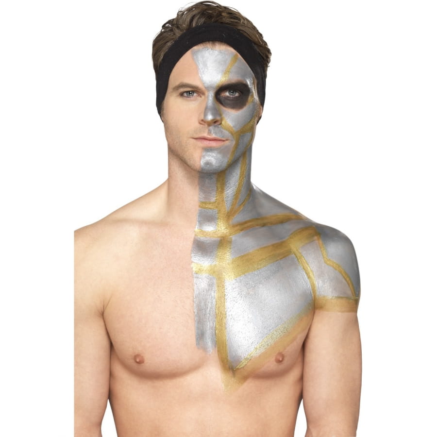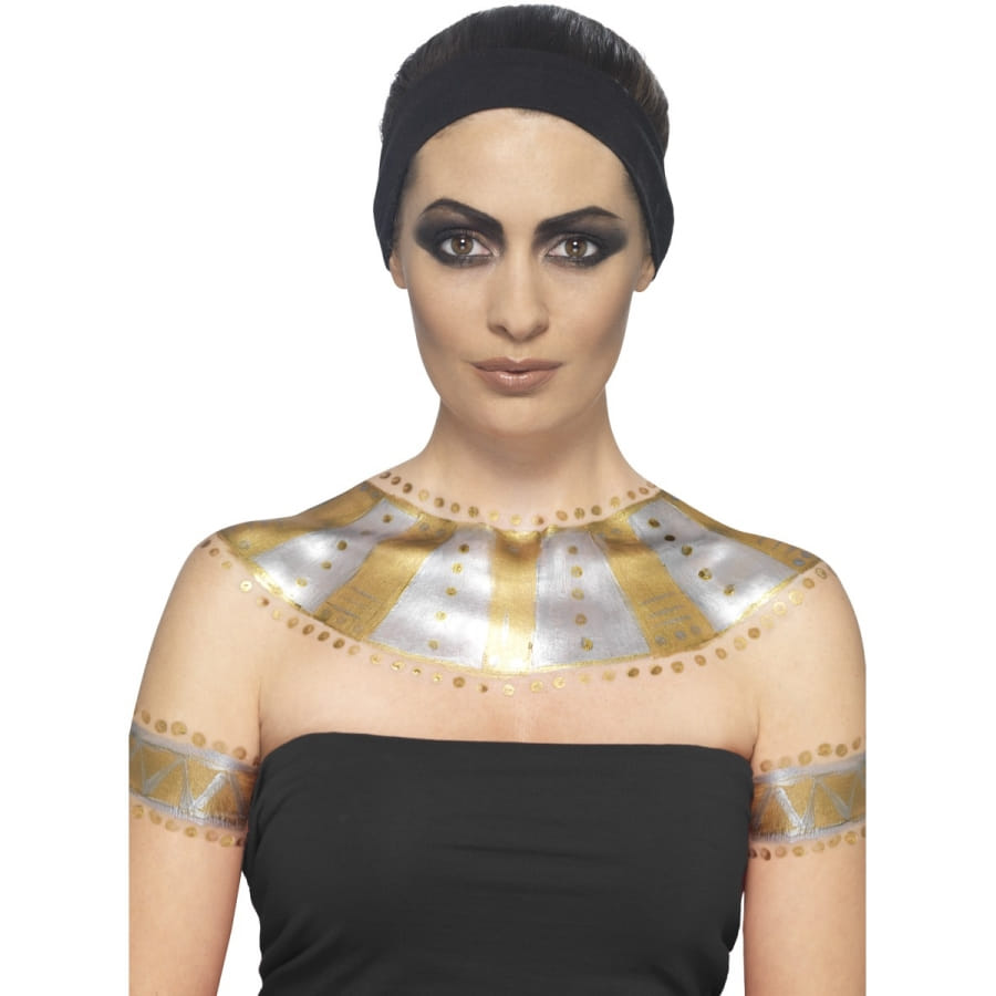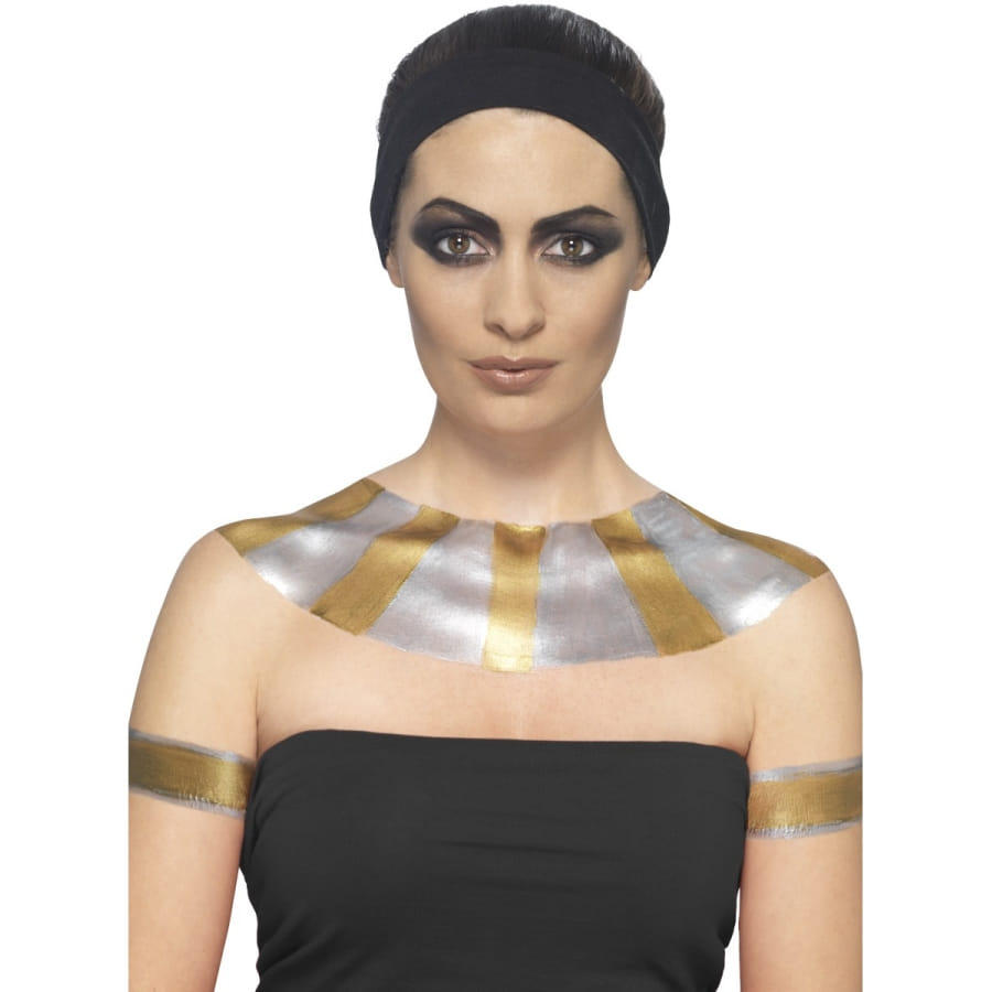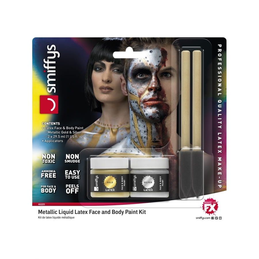 Les couleurs dorées et argentées sont à l'honneur pour créer un somptueux make up. Adoptez le look égyptien à travers ce kit pour maquillages métalliques. Doré et argenté. L'article est composé d'un pot de maquillage de couleur argentée et d'un autre pot contenant du maquillage or et bronze. Chaque pot a une contenance de 29,57 ml. Vous disposerez aussi de deux éponges applicateurs pour une répartition uniforme.