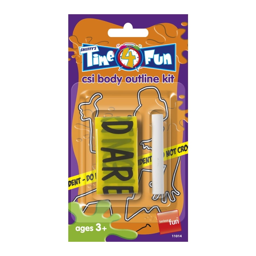 Un kit de scène de crime qui est composé d'une craie blanche et d'un ruban jaune avec une écriture noire dessus. Vous pourrez vous en servir pour le carnaval ou encore pour Halloween. Il ne convient pas aux enfants de moins de trois ans.