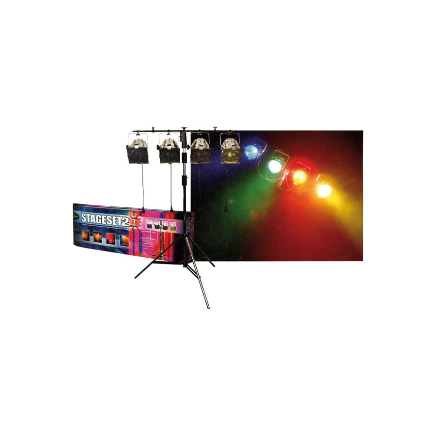 Faites monter la chaleur de l'ambiance en activant ce kit stage set complet. Un mariage ou une soirée dansante disco sera parfaitement animé grâce à cet article. Vous disposerez de 4 projecteurs par 36 avec des lampes de 300 W, de 4 porte filtres, de 4 gélatines de différentes couleurs, d'un pied d'éclairage noir et d'une barre de couplage pour installer et monter les projecteurs. Il n'y a pas de modulateur de lumière. L'éclairage de la piste de danse sera bien tamisée et vos invités oseront dévoiler leurs talents de danseurs cachés !