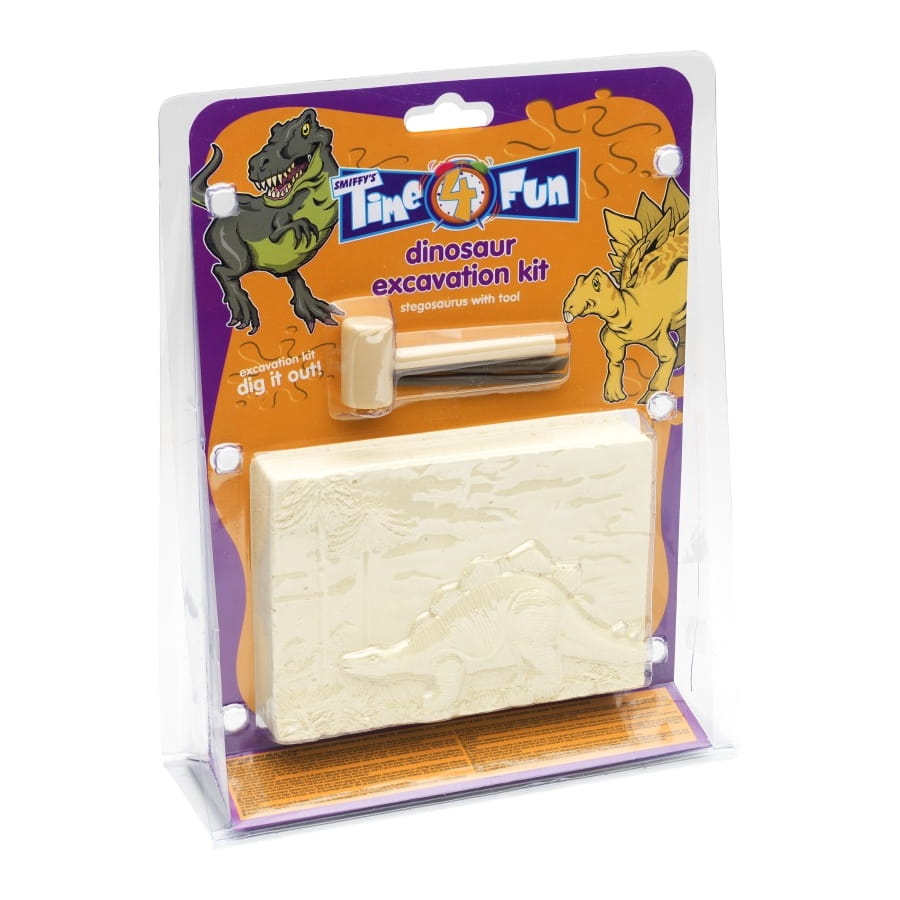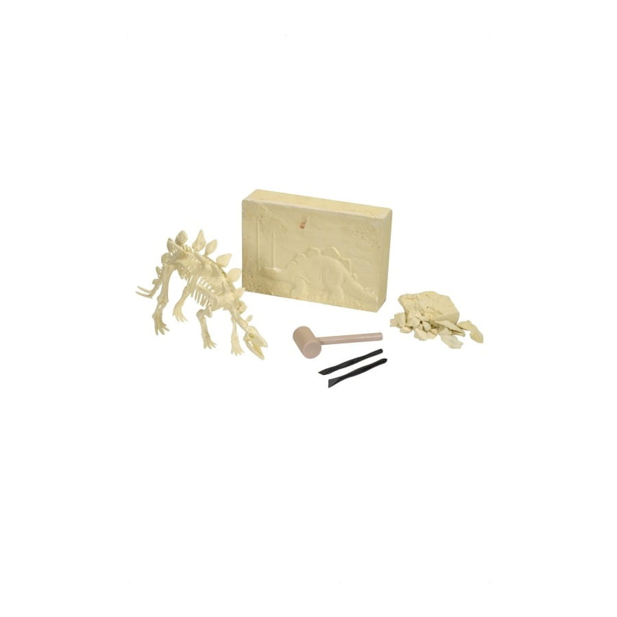 Kit d'excavation de dinosaure en bois, pour enfants. Le kit est livré avec un marteau et vous permettra de déterrer un stégausaure. Il est idéal si votre enfant est fan de dinosaure ou d'archéologie.