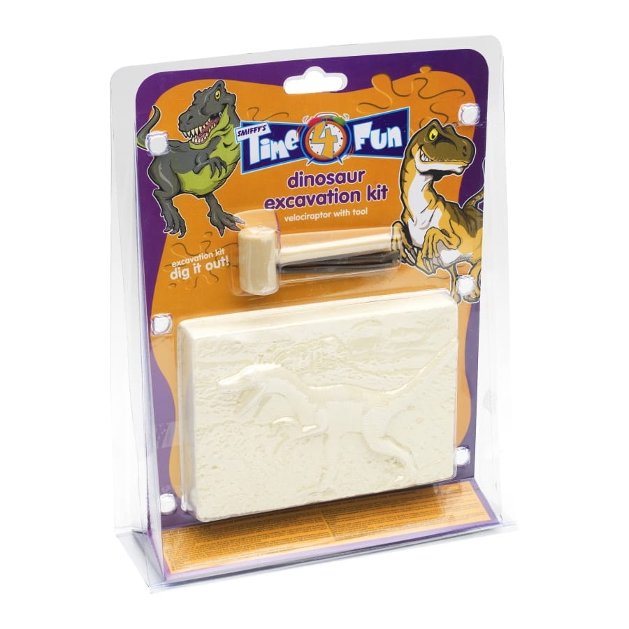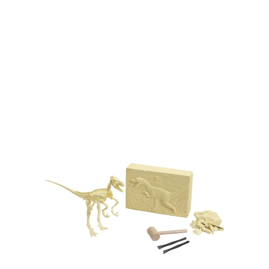 Kit d'excavation vélociraptor de couleur beige, pour garçon ou fille, vendu en set de 12. Votre enfant améliorera ses talents d'archéologue avec ce kit complet d'excavation!