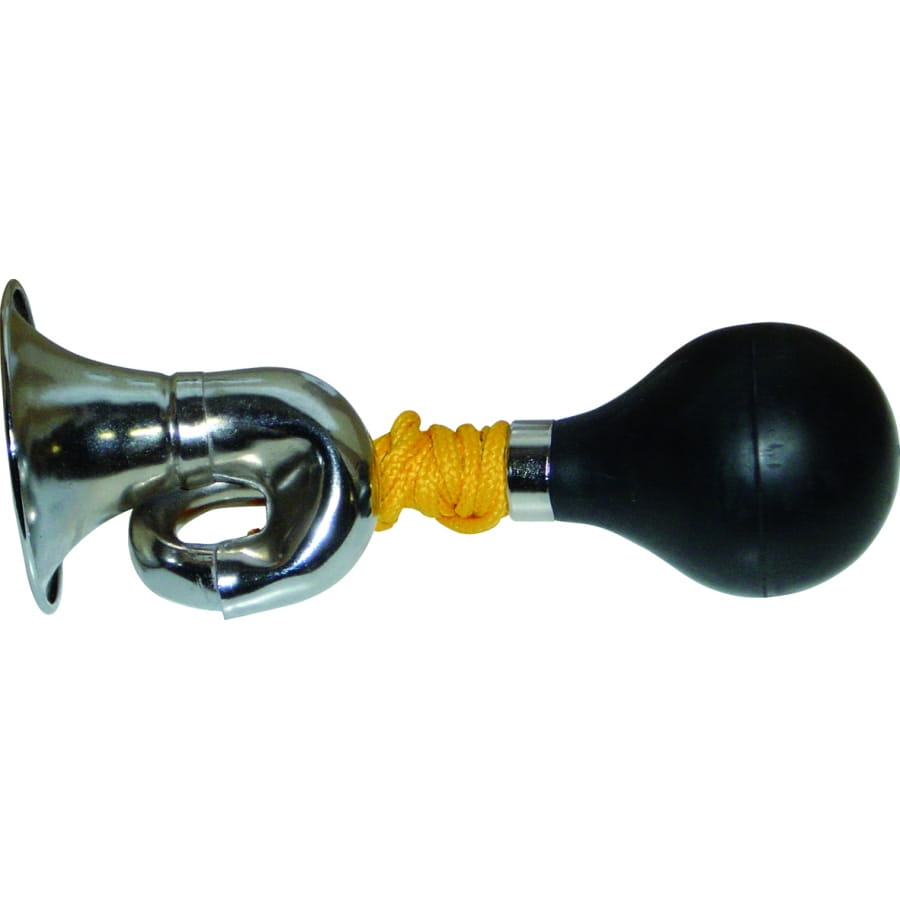 Klaxon argenté, jaune et noir. Cet accessoire ajoutera de l'ambiance à toutes les fêtes, que ce soit un carnaval ou une fête d'anniversaire pour enfants!