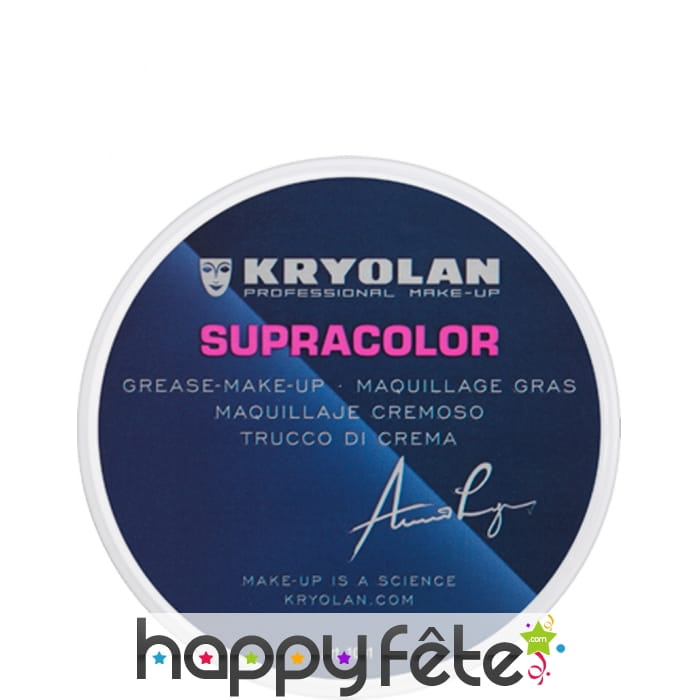 Voilà le maquillage tout en blanc pour le visage (et le corps) : Supracolor blanc de Kryolan. Ce produit est à appliquer sur le visage pour un déguisement d'Edward, de clown ou de tout autre personnage pour lequel vous aurez besoin de peindre une partie ou tout votre visage en blanc. Ce maquillage est contenu dans un pot de 8 ml.