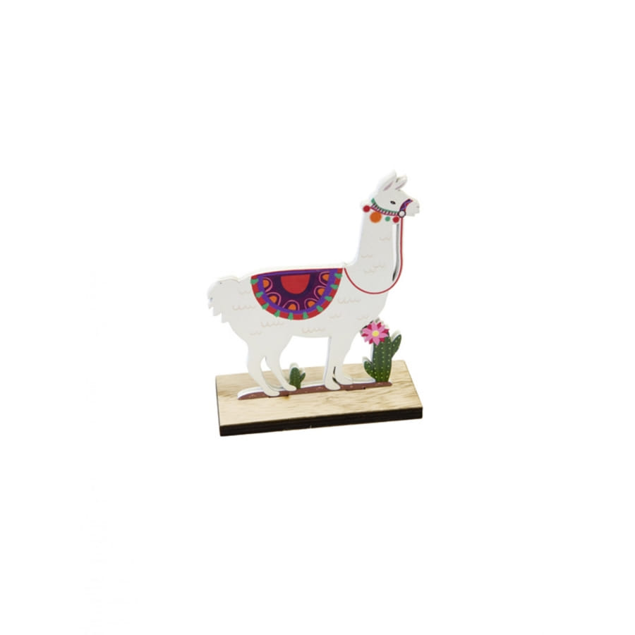Apportez une touche mexicaine à votre décoration d'intérieur, en ajoutant ce lama blanc sur pied en bois, 13 cm.