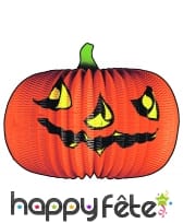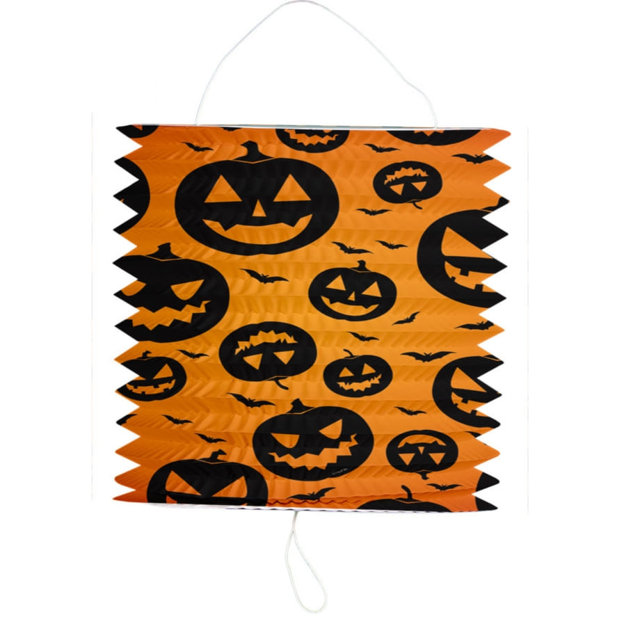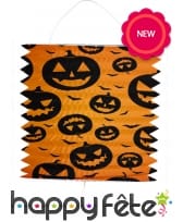 Il est fabriqué à base de papier et se déplier selon vos envies. Ses bordures sont dentelées et ses motifs sont conçus sur le thème d'Halloween. On retrouve ainsi des imprimés de citrouilles souriantes de tailles variées, accompagnées de petites chauves-souris. Les motifs sont noirs sur un fond orange. Le lampion fait 16 x 22 cm.